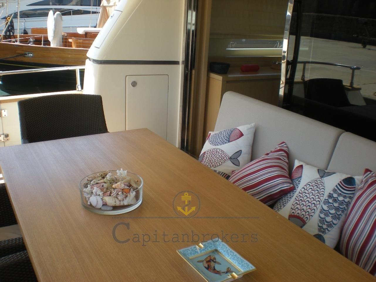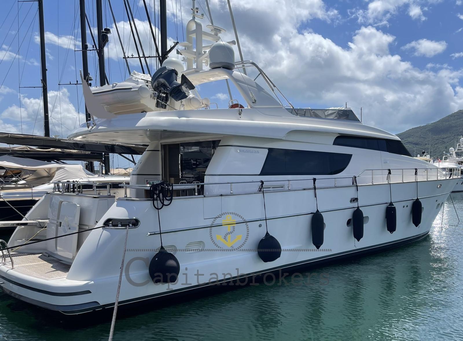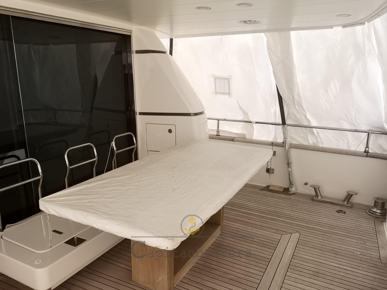 Allarme motore, Allarme sentina, Autoclave, Doccia esterna, Doppia timoneria, Faro orientabile, Flap elettrici, Gruette, Gruette per tender su fly, Impianto antincendio, Passerella, Piattaforma, Pompa di sentina automatica, Porta laterale, Pozzetto Teak, Presa 220V banchina, Presa acqua banchina, Salpa Ancore Elettrico, Scaletta da bagno, Stabilizzatori (Pinne stabilizzatrici), Tavolo pozzetto, Tender, Winch tonneggio di poppa, Winch tonneggio di prua.