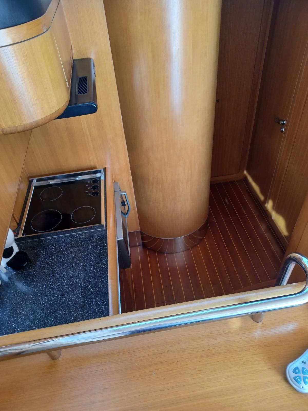Passarella elettro idraulica Besenzoni - elica di prua elettrica - antenna TV SAT Glomex - TV in salone e tutte le cabine - frigo in pozzetto - gruppo elettrogeno Mase 5 kW - aria condizionata Veco - piano cottura elettrico 3 fuochi - forno combinato microonde - frigo/freezer.