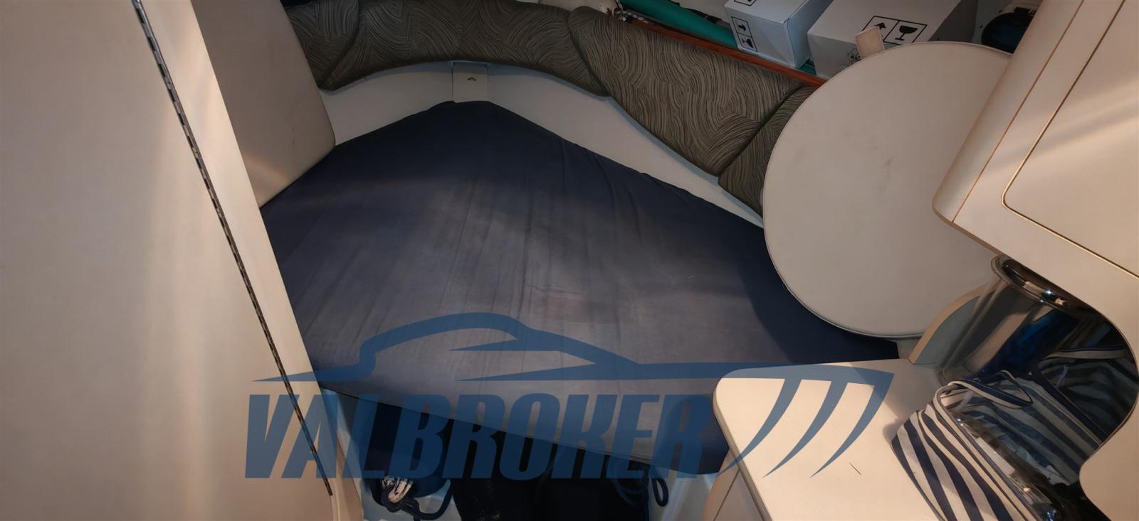 Four Winns 285 con ampio pozzetto convertibile in prendisole. Sottocoperta, la cabina include una dinette convertibile in cuccetta a V e un locale toilette separato. Utilizzata sempre e solo lago.