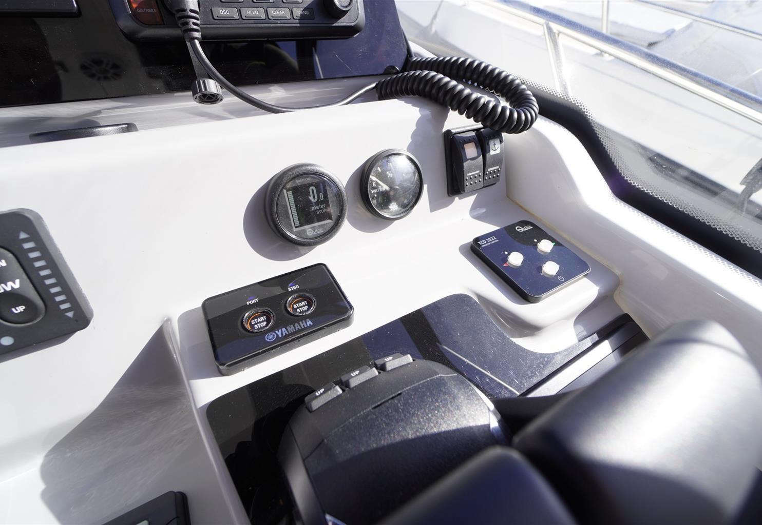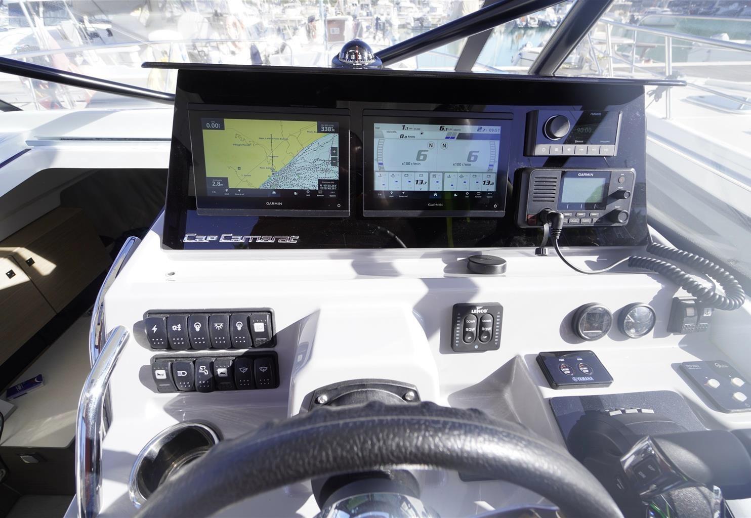 Comando motori elettronico, 2 GPS (Garmin), Log (Garmin), Pilota automatico (Garmin), 2 Plotter (Garmin), Radar (Garmin), Radio VHF (Garmin).