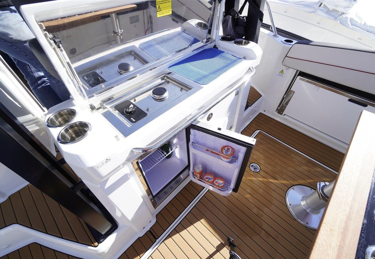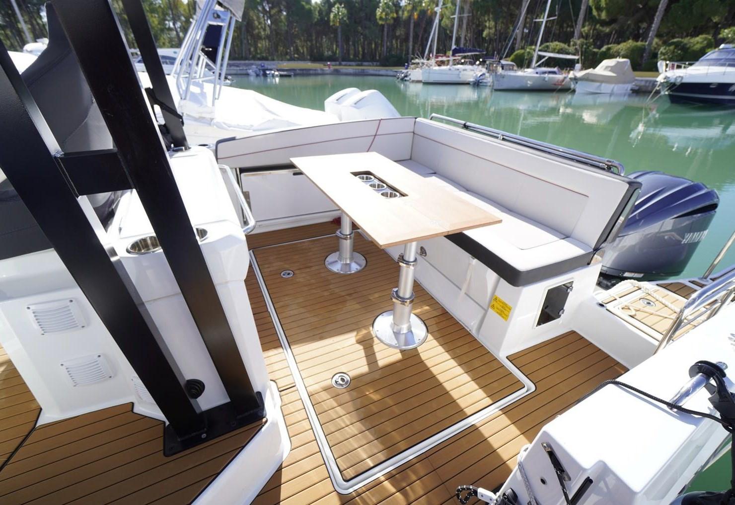 serie 2; contacatena elettronico; tettuccio apribile ; hard top; tendalino di poppa retraibile con laterali parasole; tendalino con pali in carbonio a prua; apertura fiancata laterale; completo di teli di copertura per prua, poppa e area centrale; comandi motori elettronici; ponte in teak Synteak; mediazione del 5% +IVA 22% a carico dell' acquirente (IVA si calcola sull' importo della mediazione) .
