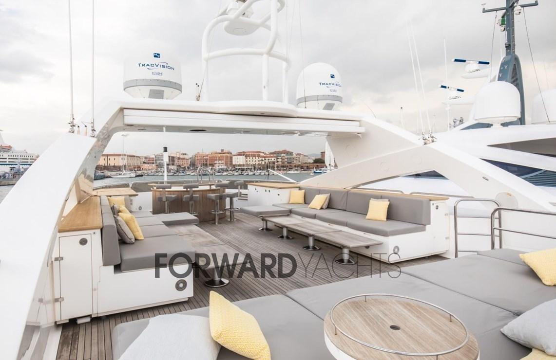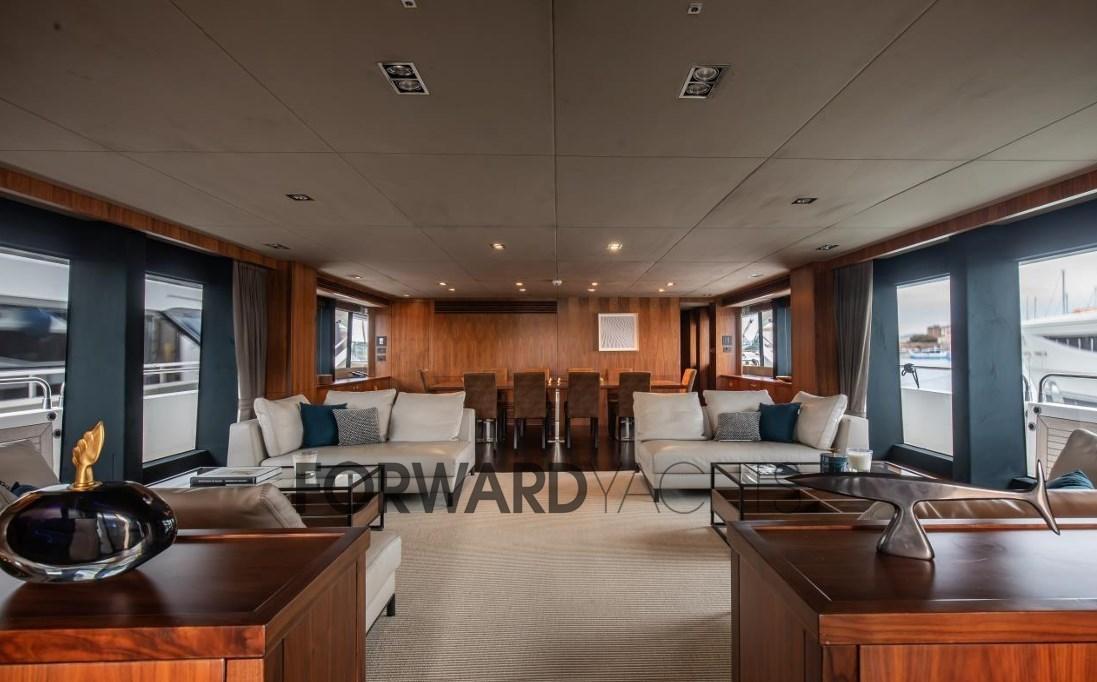 Equipaggiata con 2 motori MTU da 3.180 Hp e dotata di stabilizzatore, garantisce comfort sia in navigazione sia all'ancora.