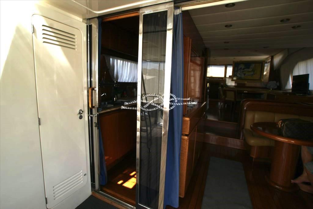 Terza stazione di comando a poppa - elica di prua Vetus - pannello elettronico Boening per controllo livelli acqua, carburante, cassa acque nere e acque grigie - telecamera per visione sala macchine - aria condizionata - dissalatore Marinco - gruppo elettrogeno Kohler 17 kW e Onan 12 kW - tender con fuoribordo 40 hp Suzuki - passerella elettroidraulica Morsaverio - gruetta fly Morsaverio - lavatrice - WC Tecma ad acqua dolce - 1 frigo e 2 congelatori nel locale anti sala macchine - cucina con frigo freezer forno e piano cottura 4 fuochi a gas - mobile con doppio frigo/ice maker, lavello e piano cottura due fuochi elettrico sul fly - TV - antenna SAT Seatel - decoder SAT.