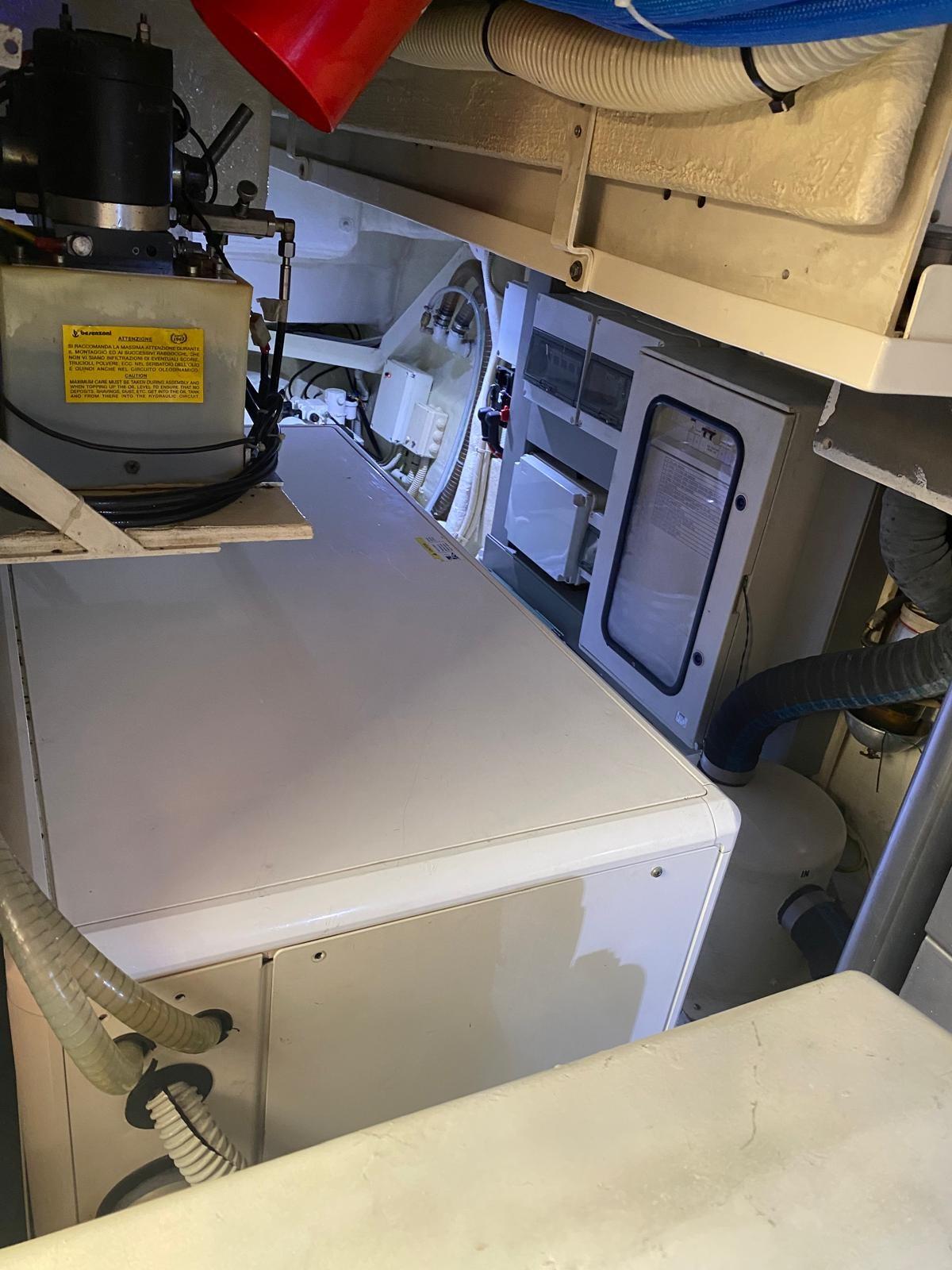 Aria condizionata (2 compressori Frigit), Boiler, Cassaforte, Dissalatore (Idromar ore moto 15), Impianto acque nere, Prese interne 220v, Serbatoio Acque Nere, WC marino elettrico.