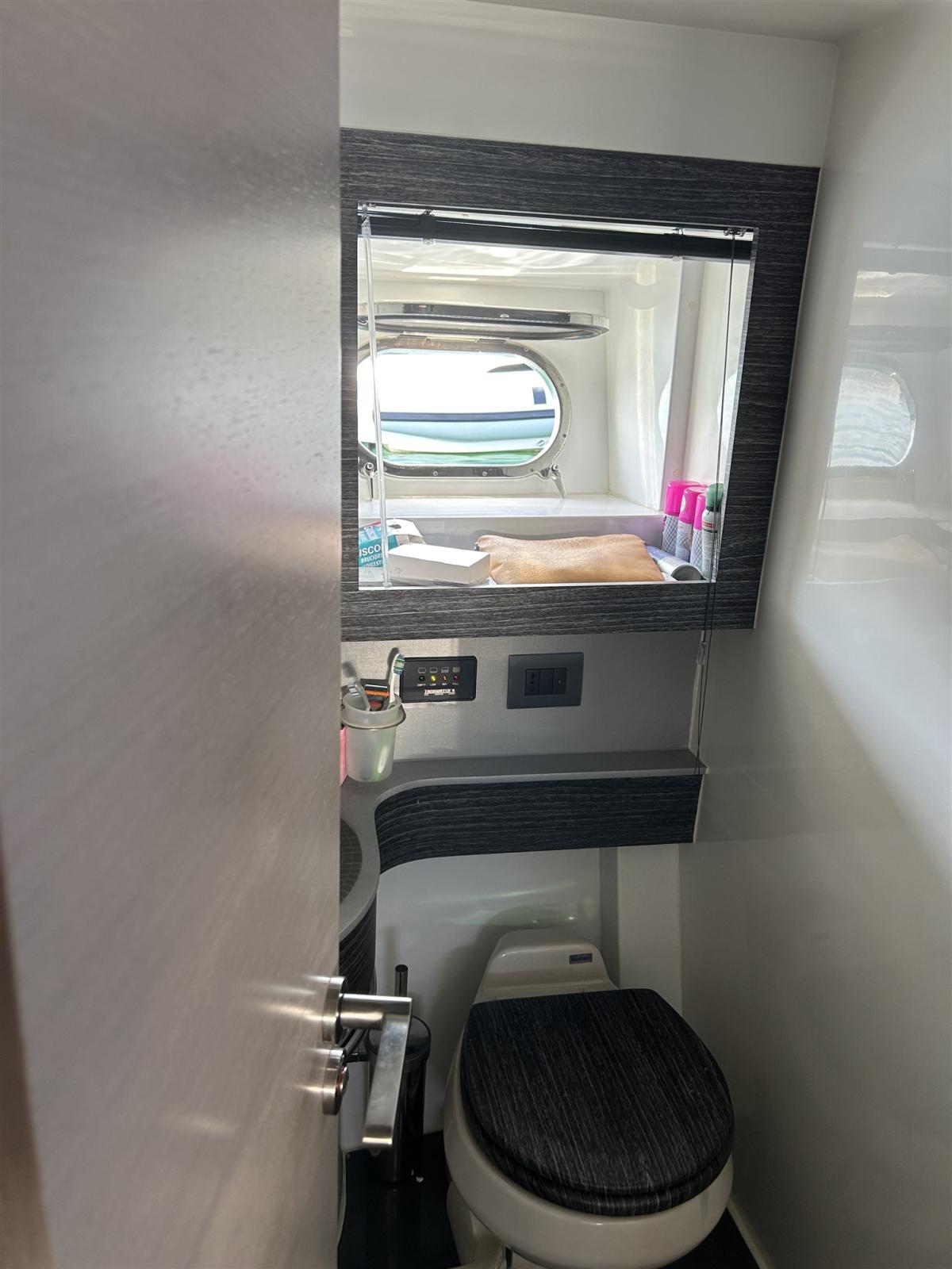 Aria condizionata (doppio ciclo), Boiler, Impianto acque nere, Prese interne 220v, Serbatoio Acque Nere, WC marino elettrico.
