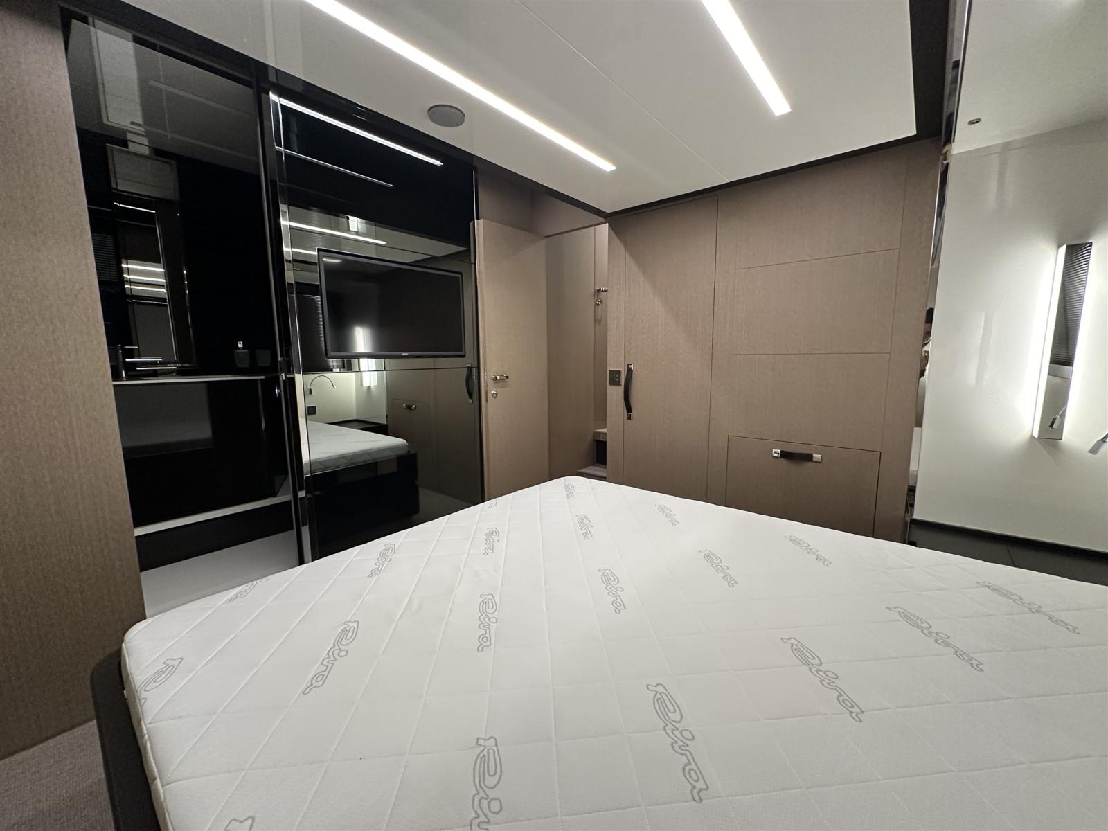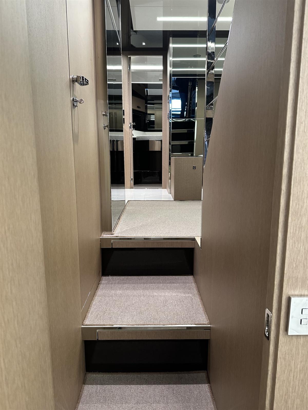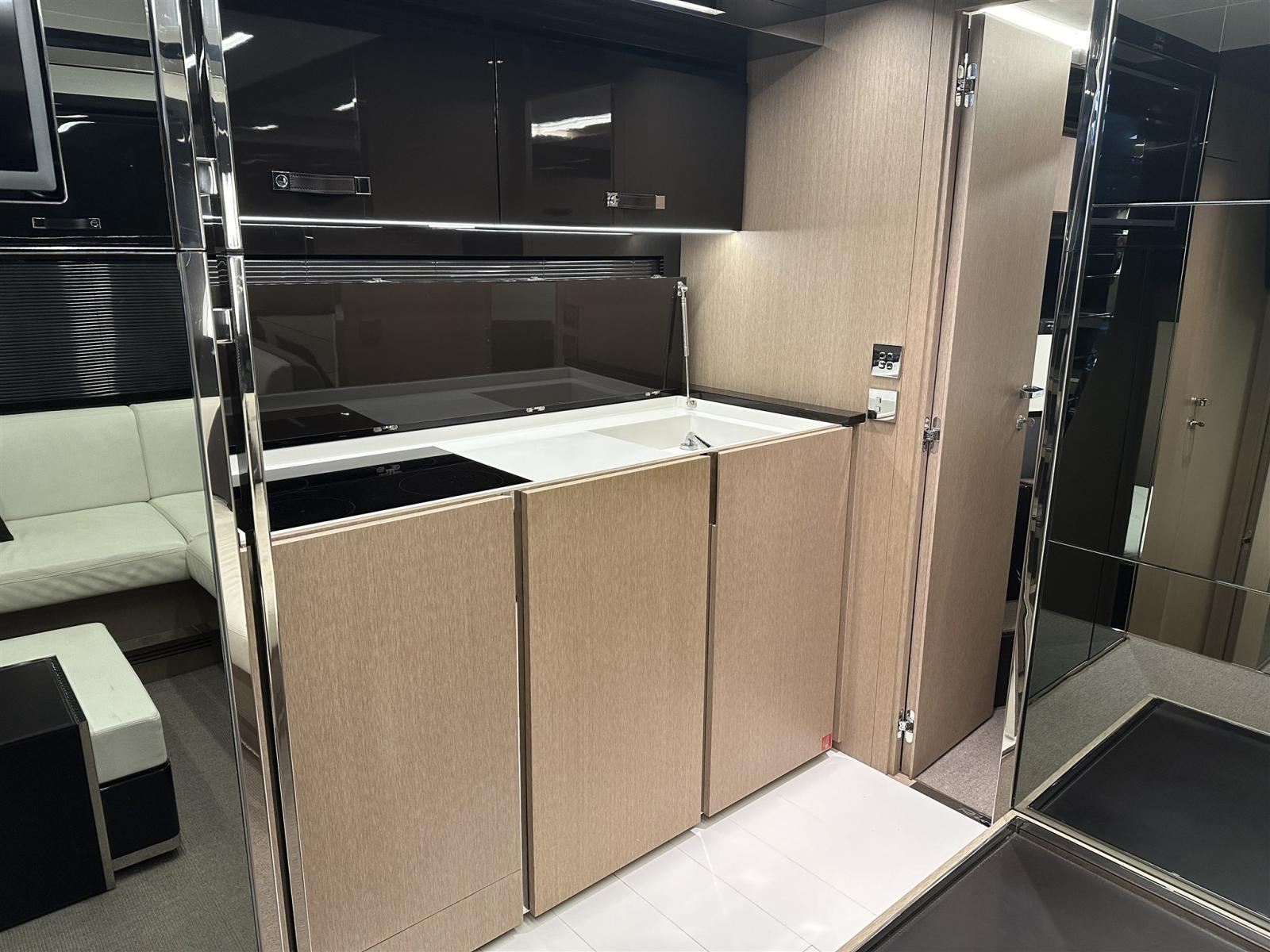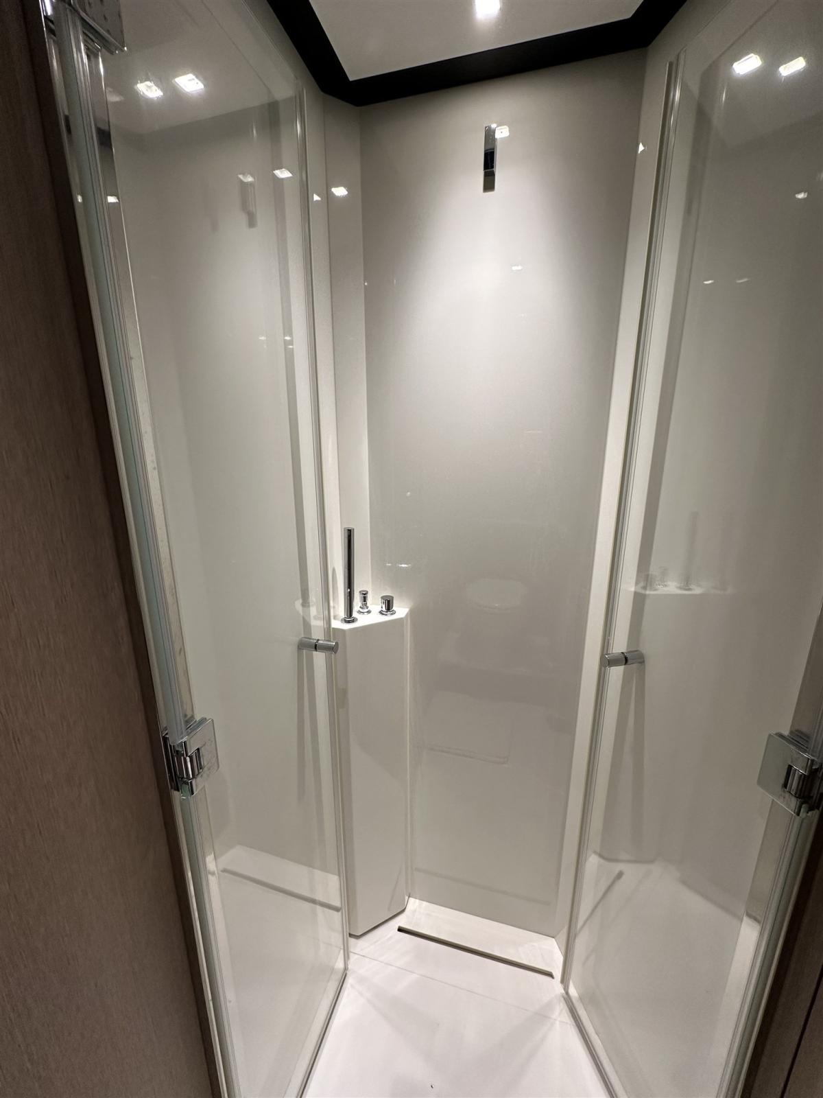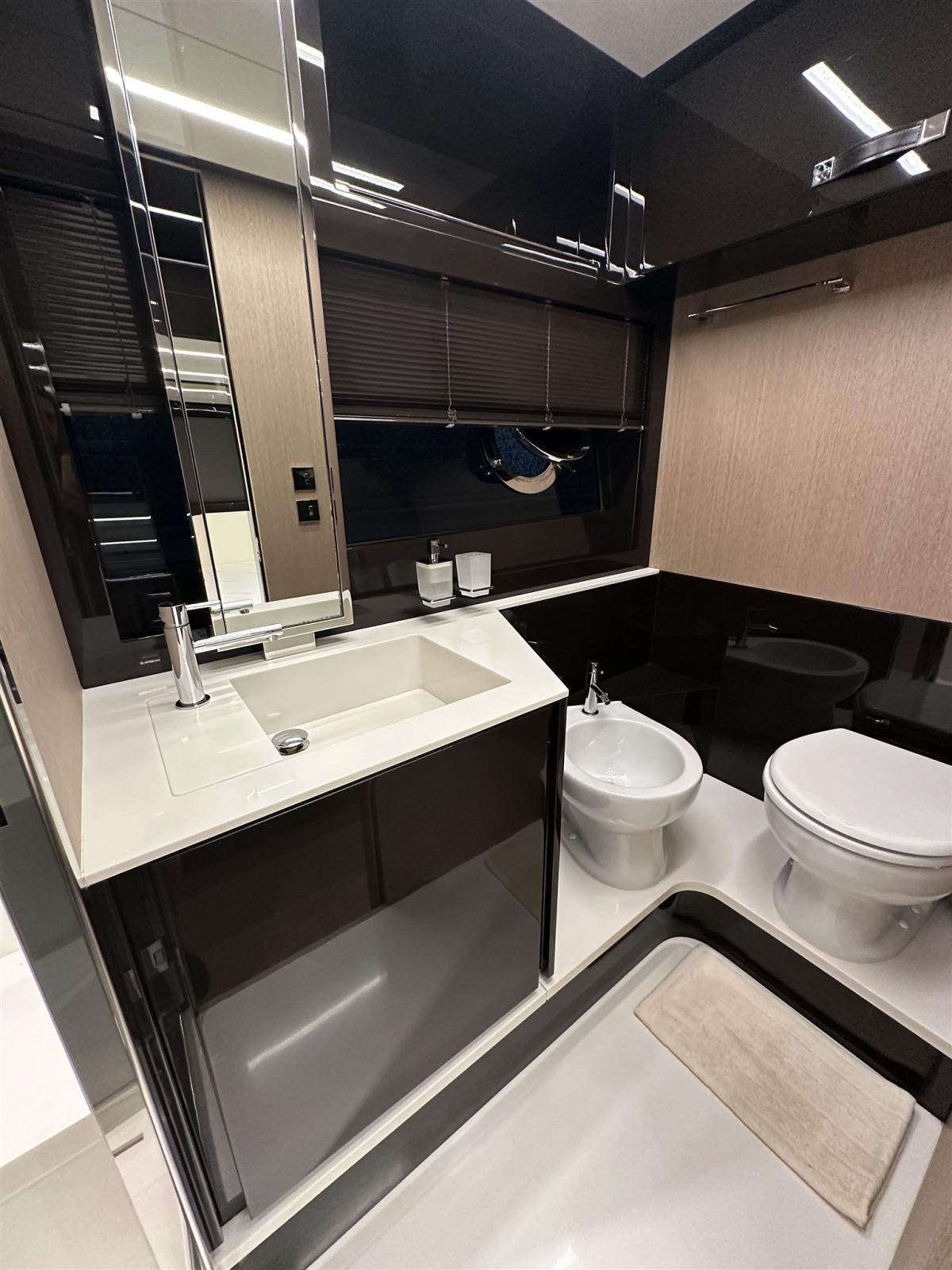 Allarme fumo/gas, Allarme motore, Allarme sentina, Ancora (Acciaio CATENA MAGGIORATA), Auto Dynamic Trim Interceptor, Autoclave, Camminamenti laterali in teak, Colorazione speciale (Shark Grey linea galleggiamento acquamarina), Doccia esterna, Faro orientabile, Flap idraulici, Garage per tender, Indicatori Flaps, Lavaggio catena, Lavandino nel Pozzetto, Luci di cortesia, Luci subacquee (poppa), Passerella (idraulica a scomparsa), Piattaforma, Pompa di sentina automatica, Pompa di sentina manuale, Porta ingresso, Pozzetto Teak, Presa 220V banchina, Presa acqua banchina, Raddrizzatore, Salpa Ancore Elettrico, Scaletta da bagno (elettroidraulica), Sistema Depurazione acque nere, Stabilizzatori (Seakeeper), Tavolo pozzetto, Tientibene con cancelletti (Acciaio), Tromba, Winch tonneggio di poppa, Winch tonneggio di prua.