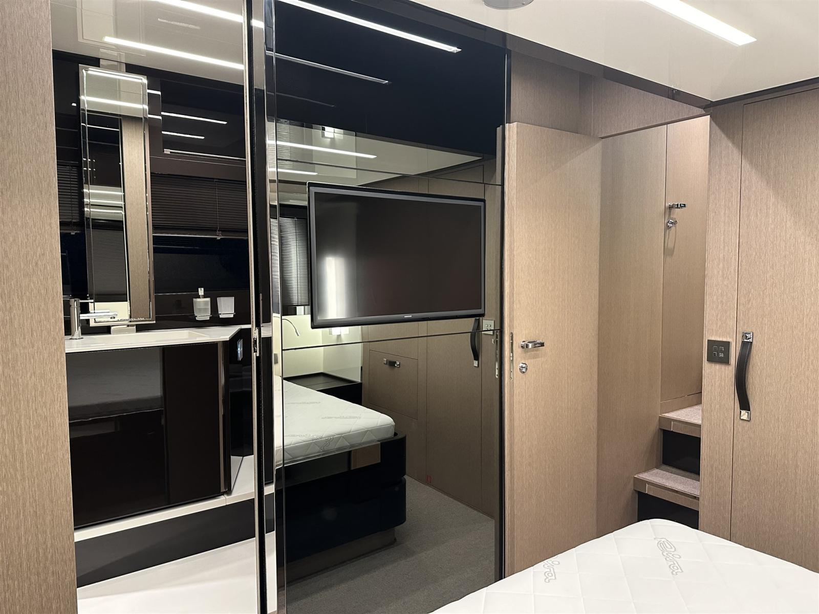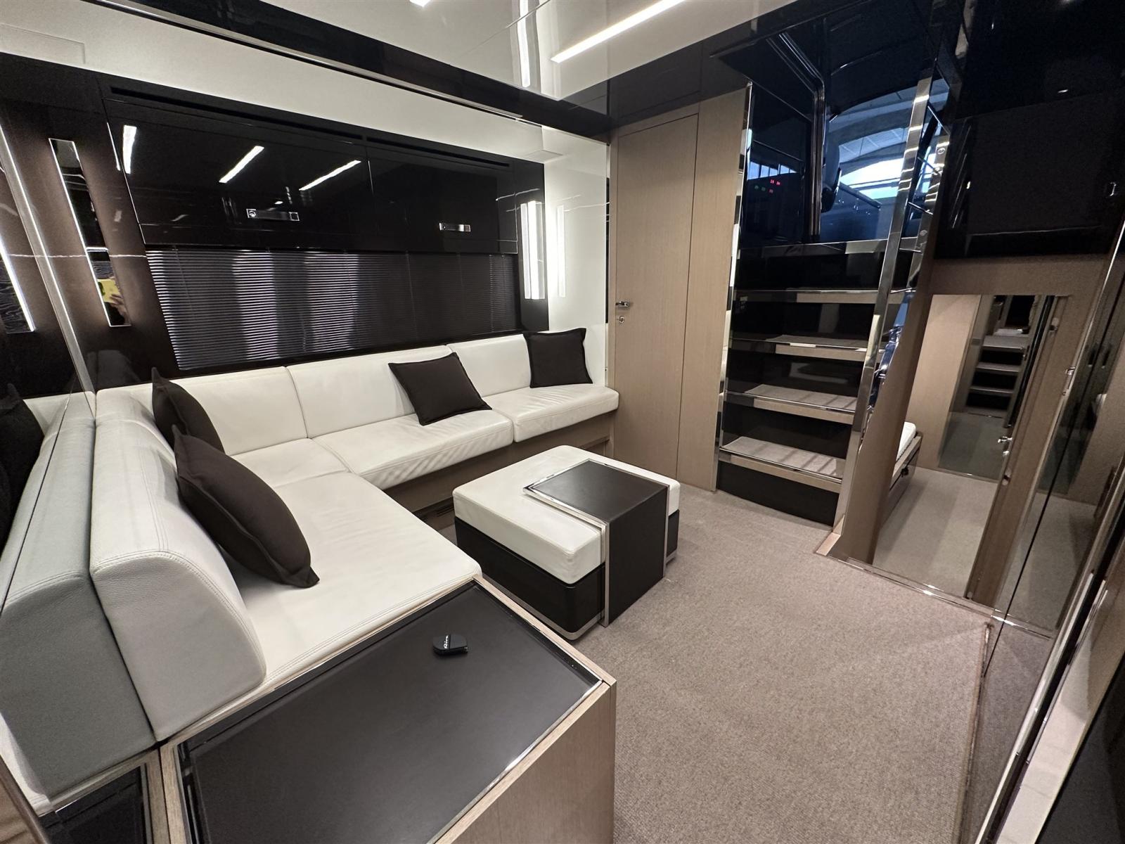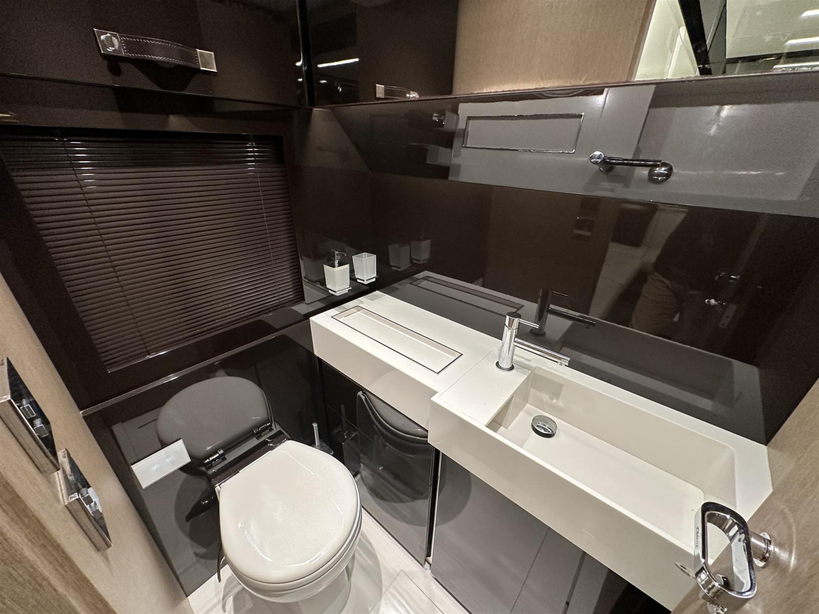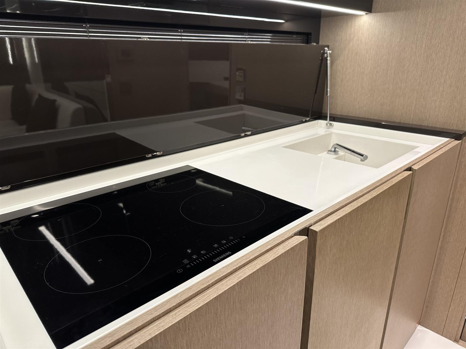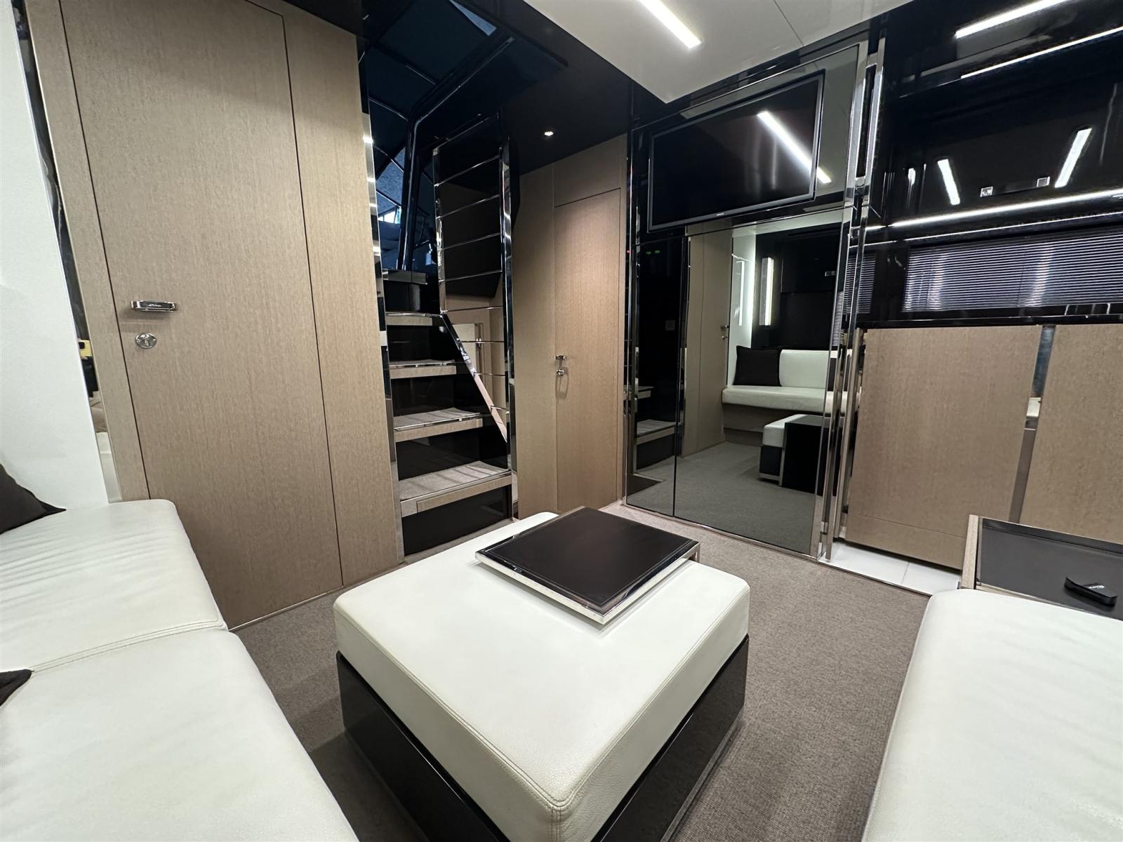 Allarme fumo/gas, Allarme motore, Allarme sentina, Ancora (Acciaio CATENA MAGGIORATA), Auto Dynamic Trim Interceptor, Autoclave, Camminamenti laterali in teak, Colorazione speciale (Shark Grey linea galleggiamento acquamarina), Doccia esterna, Faro orientabile, Flap idraulici, Garage per tender, Indicatori Flaps, Lavaggio catena, Lavandino nel Pozzetto, Luci di cortesia, Luci subacquee (poppa), Passerella (idraulica a scomparsa), Piattaforma, Pompa di sentina automatica, Pompa di sentina manuale, Porta ingresso, Pozzetto Teak, Presa 220V banchina, Presa acqua banchina, Raddrizzatore, Salpa Ancore Elettrico, Scaletta da bagno (elettroidraulica), Sistema Depurazione acque nere, Stabilizzatori (Seakeeper), Tavolo pozzetto, Tientibene con cancelletti (Acciaio), Tromba, Winch tonneggio di poppa, Winch tonneggio di prua.