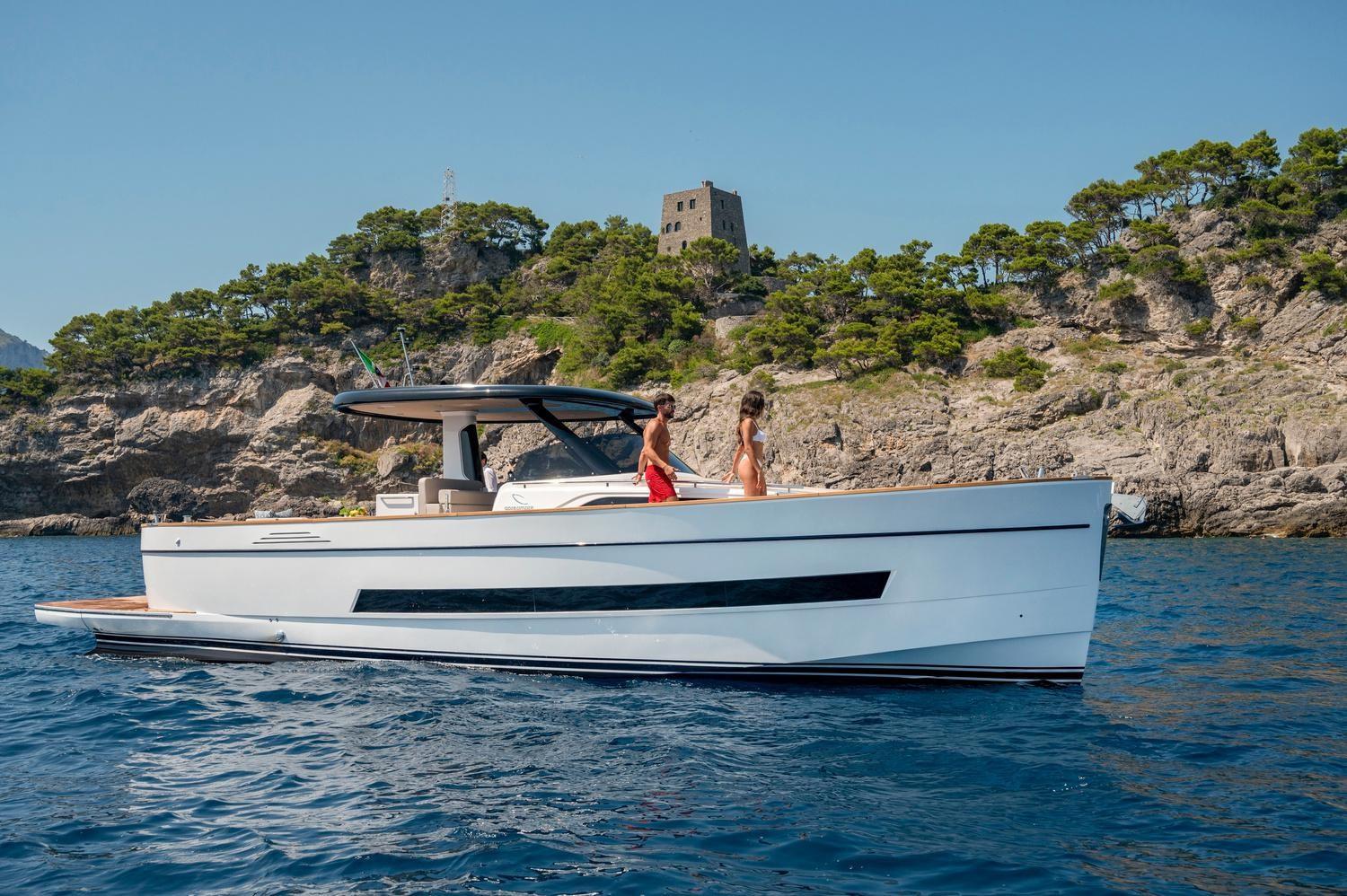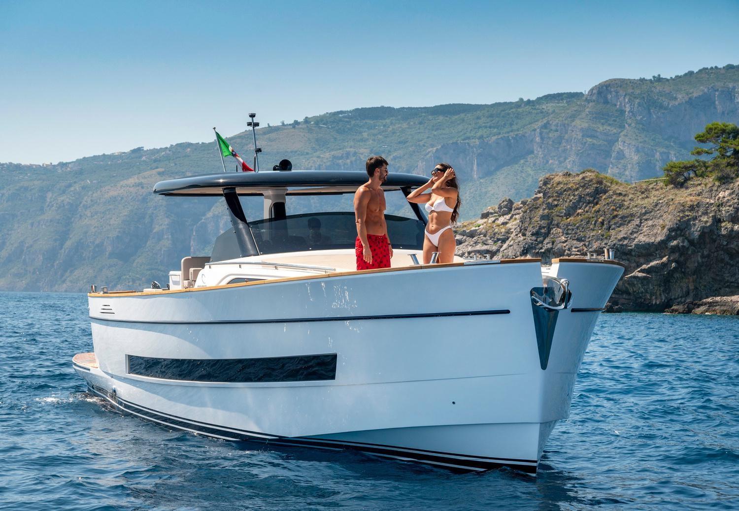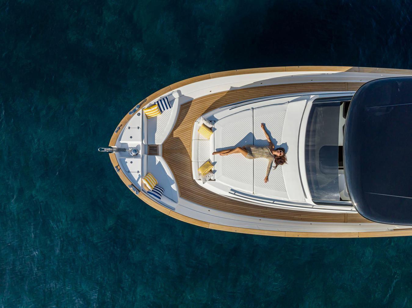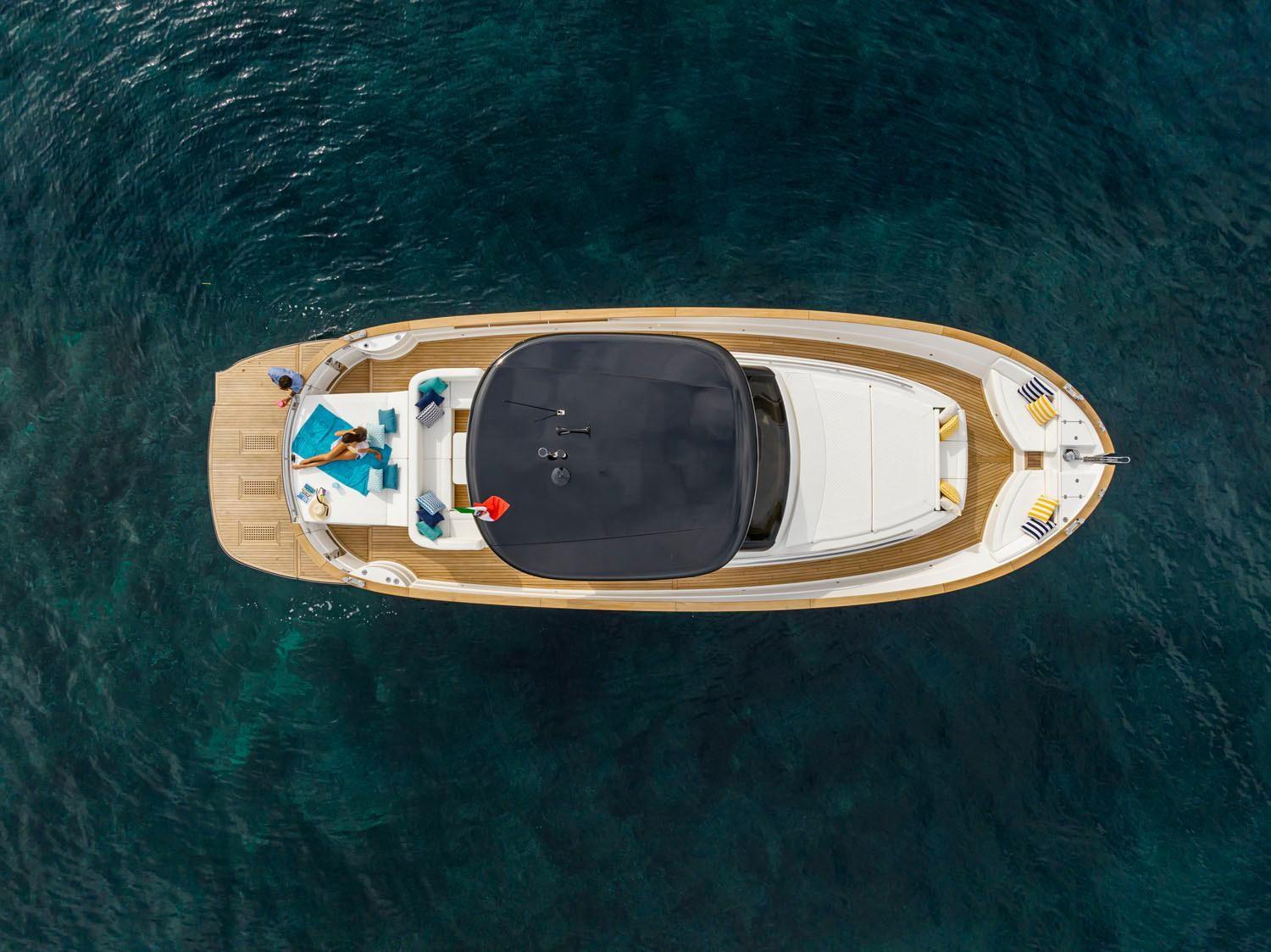 La tradizione ed essenza del marchio Apreamare, è rispettata ed amplificata nel modello Gozzo 45. Profondamente mediterraneo, questo cruiser di classe inizia con la totale assenza di gradini in coperta, nel rigoroso rispetto della filosofia walkaround. Il concetto open esalta la vita quotidiana in mare con servizi comodi e connessi: l'ampia plancetta di poppa, le due ampie zone prendisole, il tavolo in pozzetto che può ospitare 8-10 persone, il salone di prua, gli ampi passavanti e le alte murate.