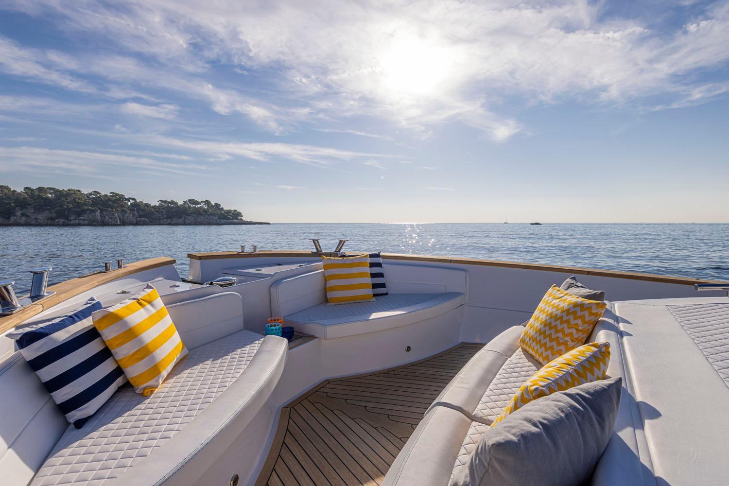 Doccia esterna, Luci di cortesia (sui camminamenti laterali), Passerella (idraulica), Piattaforma (idraulica), Pompa di sentina manuale, Pozzetto Teak, Presa 220V banchina, Ripetitore strumentazione, Scaletta da bagno, Tavolo pozzetto, 2 Winch tonneggio di poppa.