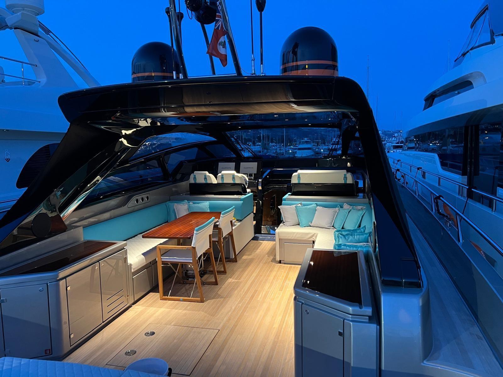 Gli spazi esterni sono pensati per il relax e la convivialità, mentre gli interni ospitano tre raffinate cabine, una cabina equipaggio e tre bagni, impreziositi da finiture in legno wengé cioccolato. A bordo non mancano comfort moderni: aria condizionata, stabilizzatore Seakeeper NG9, impianto audio premium, dissalatore e TV con Apple TV.