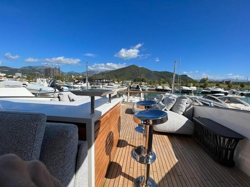 AIS, Angolo barra, Antenna radar, 3 Comando motori elettronico (postazioni), Computer di bordo (domotica), Contamiglia (GPS), Ecoscandaglio (Rymarine), GPS (Rymarine), 4 Interfaccia, Interfono (telefoni interni per ogni stanza), Joystick, MeteoFax (con rymarine predisposto), Monitor dei consumi, Pilota automatico (Rymarine), Radar (Rymarine), Radio VHF (Rymarine), Sedile Copilota (fly), Sonar.