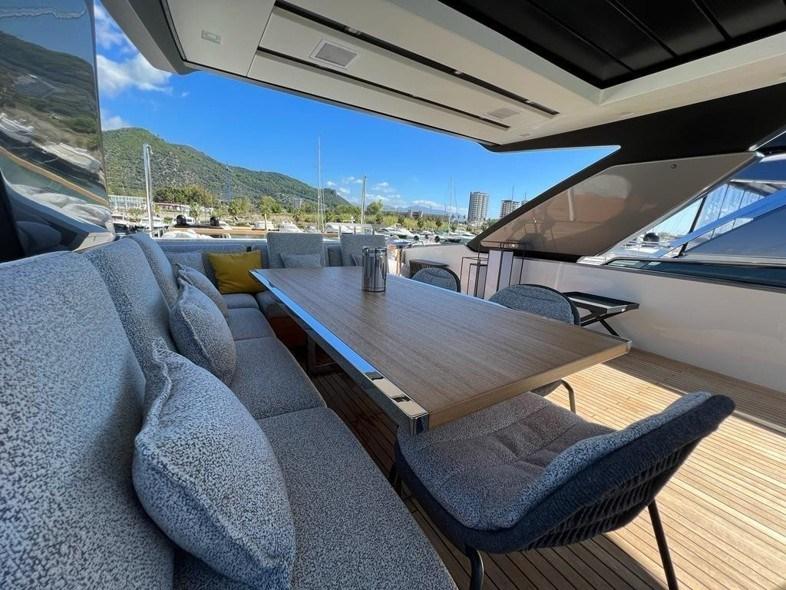 2 Bimini (prua e fly), Copripozzetto, Cuscineria completa, Cuscineria di poppa, Cuscineria di prua, Cuscineria fly, Cuscineria Pozzetto, Oscuranti (davanti alla prua), Zanzariere.
