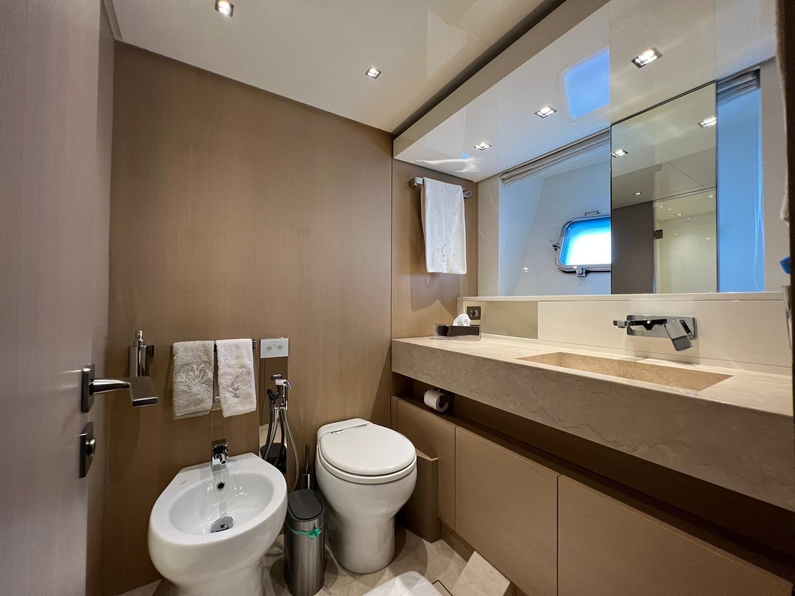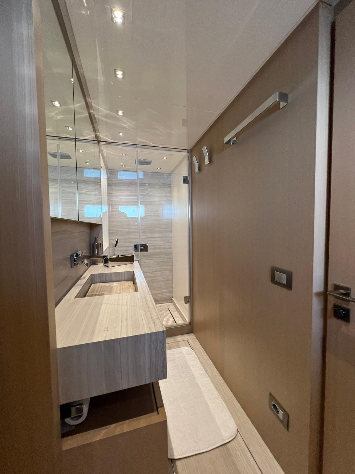 Acqua Calda, BBQ/ Grill (Fly), 2 Boiler, Clima reversibile, Collegamento internet, Controllo Domotica, Dissalatore (300 LT Ora Idromar), Impianto acque nere, Indicatore del Serbatoio dell’Acqua, Indicatore del Serbatoio delle Acque Reflue, Pavimento interno in legno (Zona Dinette), Serbatoio Acque Nere (400LT), Telecamera (Garage, plancia, Salone, Poppa, Laterali,Fly), Telefono Interno, Termovisore, WC marino elettrico.