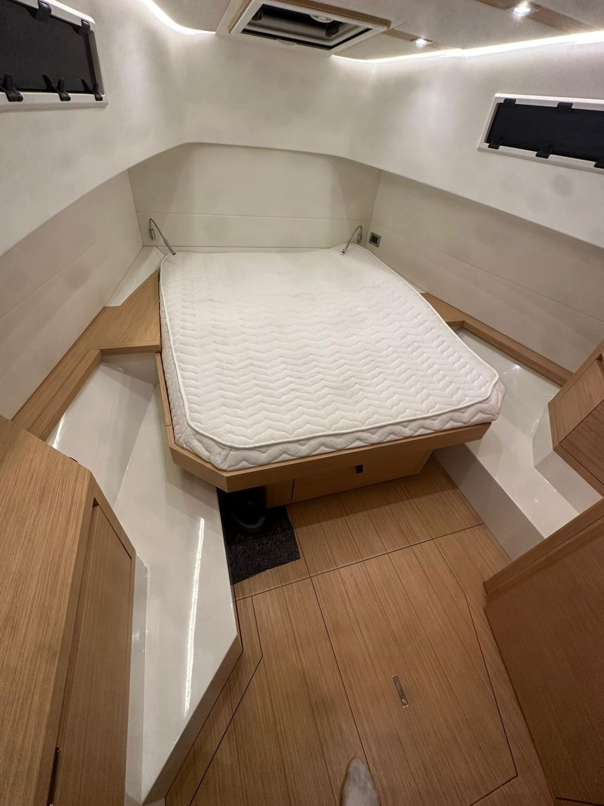 Cuscineria di poppa, Cuscineria di prua, Cuscineria Pozzetto, Telo copriconsolle, Telo coprisedile (et table), Tenda Elettrica (pour partie arrière), Tendalino (avant avec mat carbone).