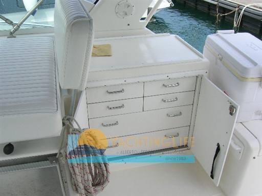 Allarme motore, Autoclave (N. 1), Colorazione speciale (Blu), Doccia esterna, Flap idraulici (N. 2), Impianto antincendio, Luci di cortesia, Passerella (Manuale), Piattaforma, Pompa di sentina automatica, Porta ingresso, Presa 220V banchina, Rollbar, Salpa Ancore Elettrico, Scaletta da bagno, Tromba.