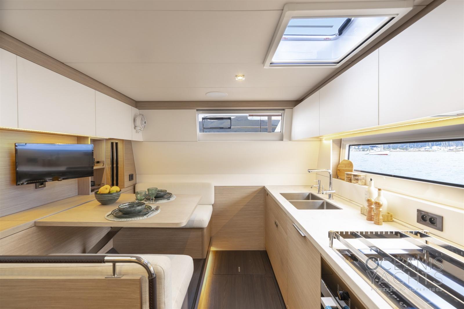 Acqua Calda, BBQ/ Grill, Boiler, Dissalatore, Impianto acque nere, Pavimento interno in legno, Prese interne 12v, Prese interne 220v, 4 Serbatoio Acque Nere, Telecamera, WC marino elettrico.