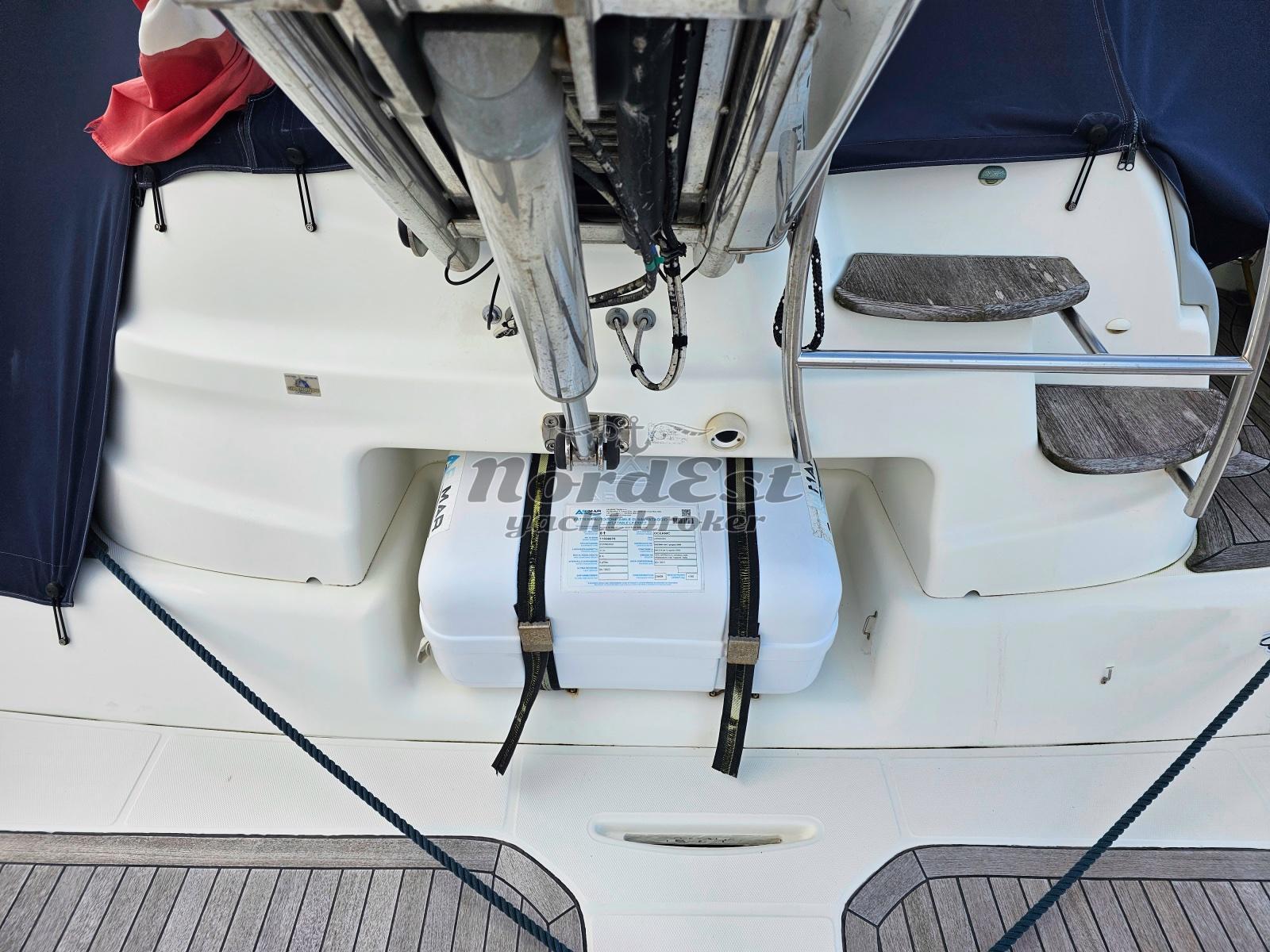 Generatore: Fisher Panda 7 kw- Tensione di bordo: 12 / 220 V - Caricabatterie - Autoclave - Boiler: bivalente - Impianto antincendio - Elica di prua - Doccia esterna - Flaps - Passerella: idraulica - Luci di cortesia - Plancetta: teak - Riscaldamento - Aria condizionata - Impianto acque nere - Winch tonneggio: n.2 - Zattera - Impianto acqua a pressione - Frigorifero esterno - Mobile bar: si esterno - Forno: microonde - Frigorifero - Piano cottura: elettrico - Cuscineria prendisole - Coprifinestrature esterne - Norvegese