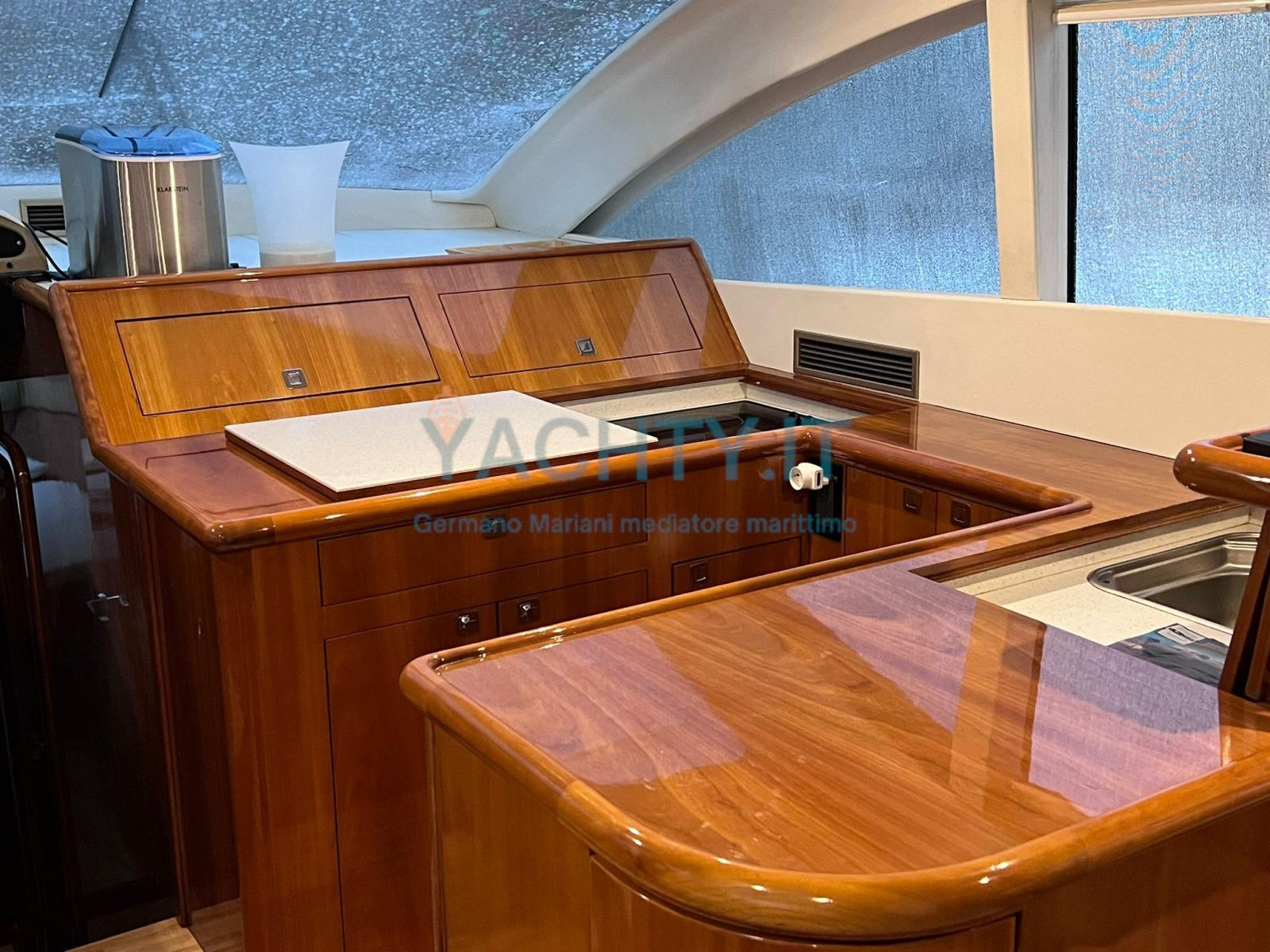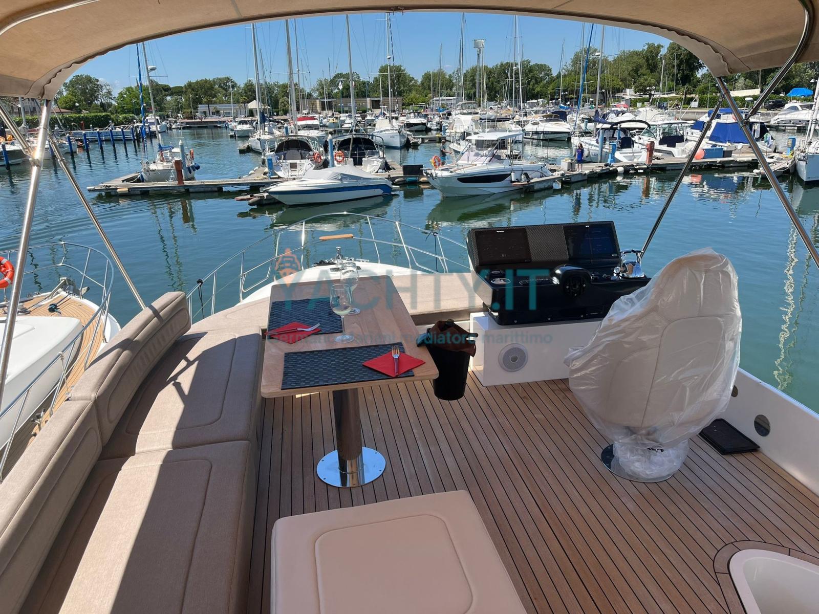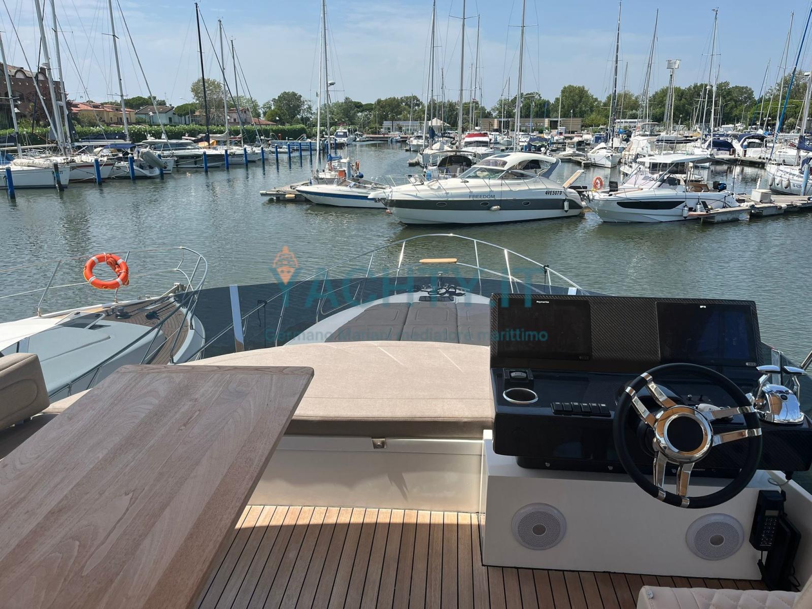 Rifatto totalmente il flybridge 2024 con nuovo layout, consolle di guida in carbonio, nuova strumentazione, nuova cuscineria, teak da 10 mm nuovo