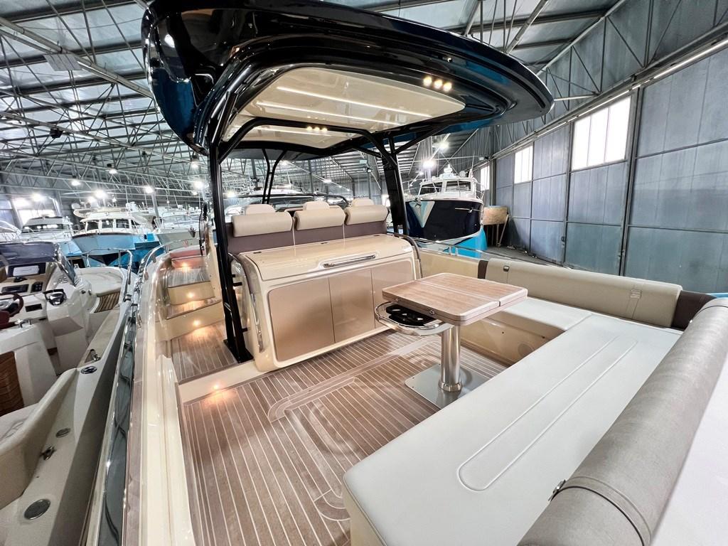 Allarme motore, Autoclave, Colorazione speciale (fiancate (Wild Bronze)), Doccia esterna, Flap elettrici, Hard top (in carbonio), Impianto antincendio, Luci di cortesia, Presa 220V banchina, Presa acqua banchina, Raddrizzatore, Salpa Ancore Elettrico, Scaletta da bagno, Tavolo pozzetto, Tromba.