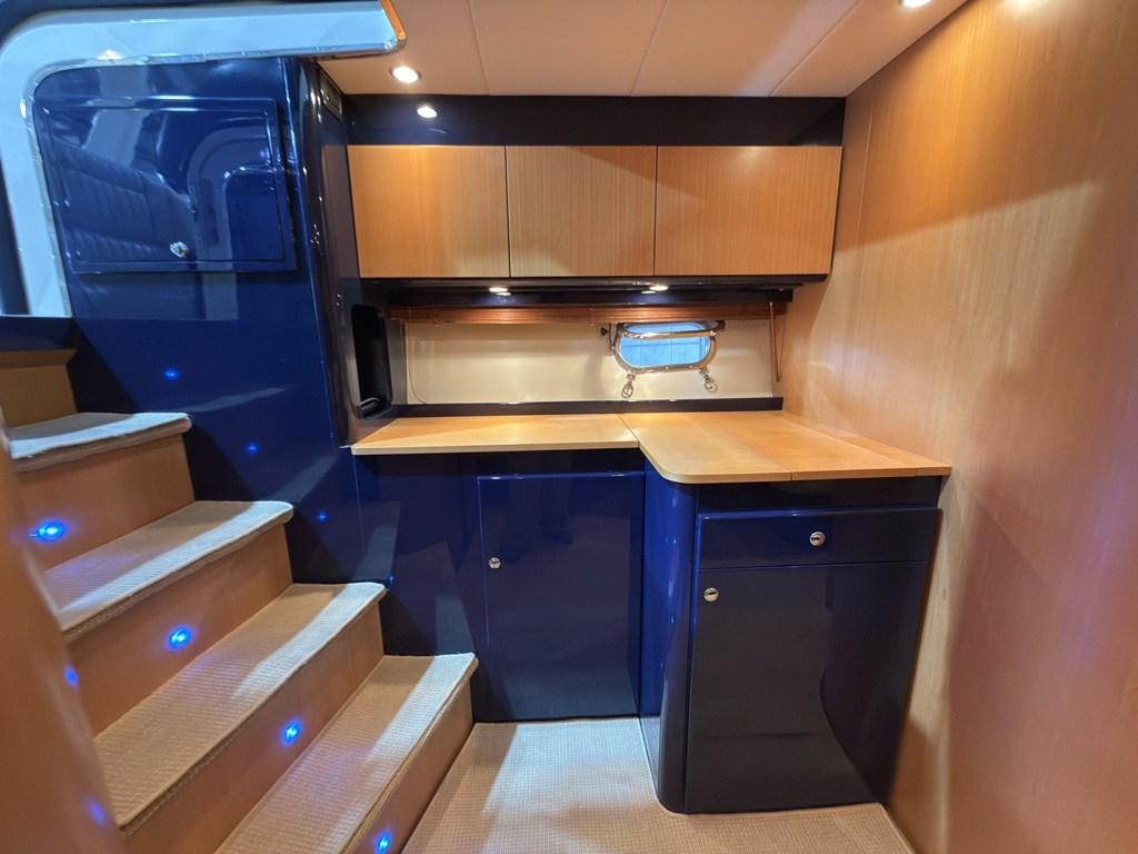 Faro orientabile, Flap idraulici, Indicatori Flaps, Passerella (Idraulica), Pozzetto Teak, Salpa Ancore Elettrico, Winch tonneggio di poppa, Winch tonneggio di prua.