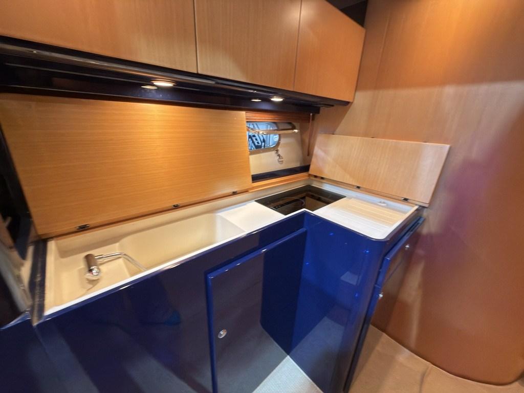 Lo scafo, infatti, è stato sviluppato per utilizzare al meglio la propulsione Volvo Penta IPS al fine di ottenere rendimenti dinamici eccellenti che si traducono in alte velocità di crociera e consumi contenuti entro i più bassi livelli della categoria.
