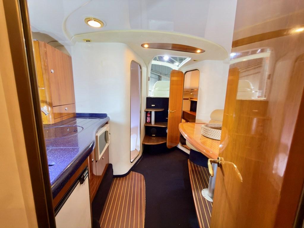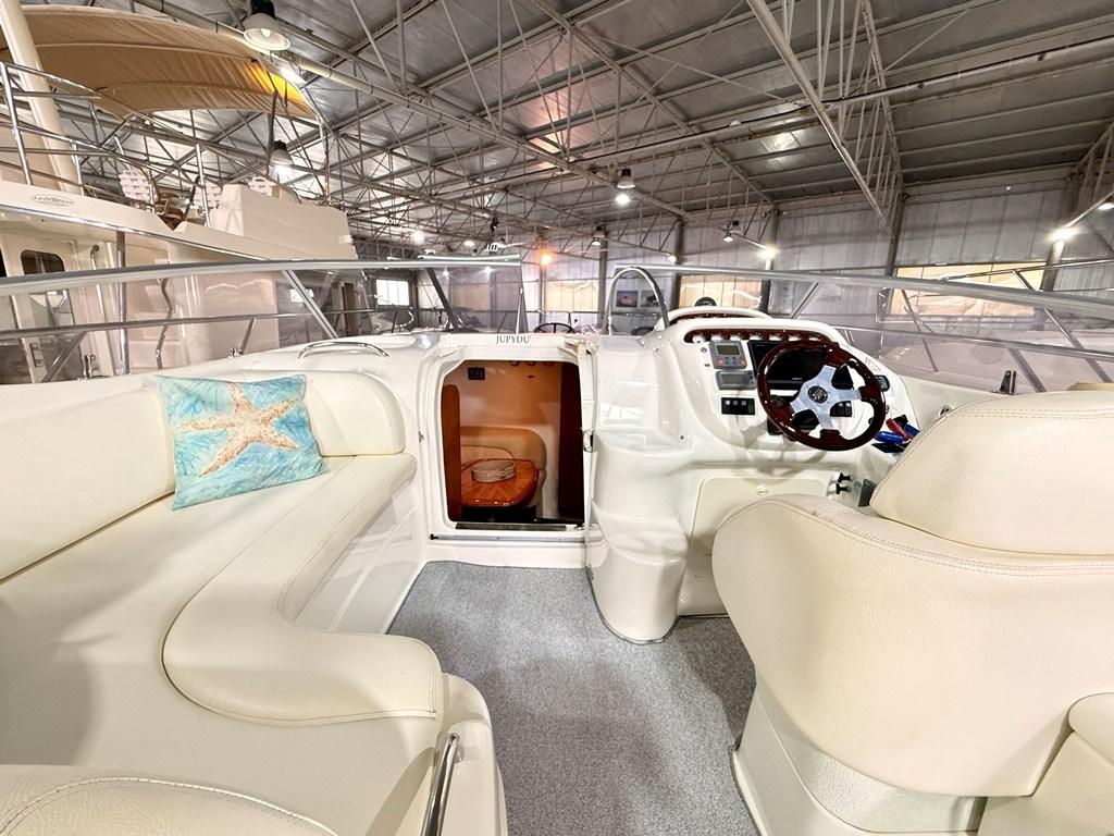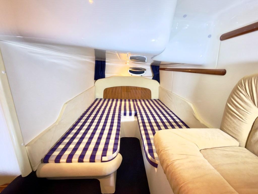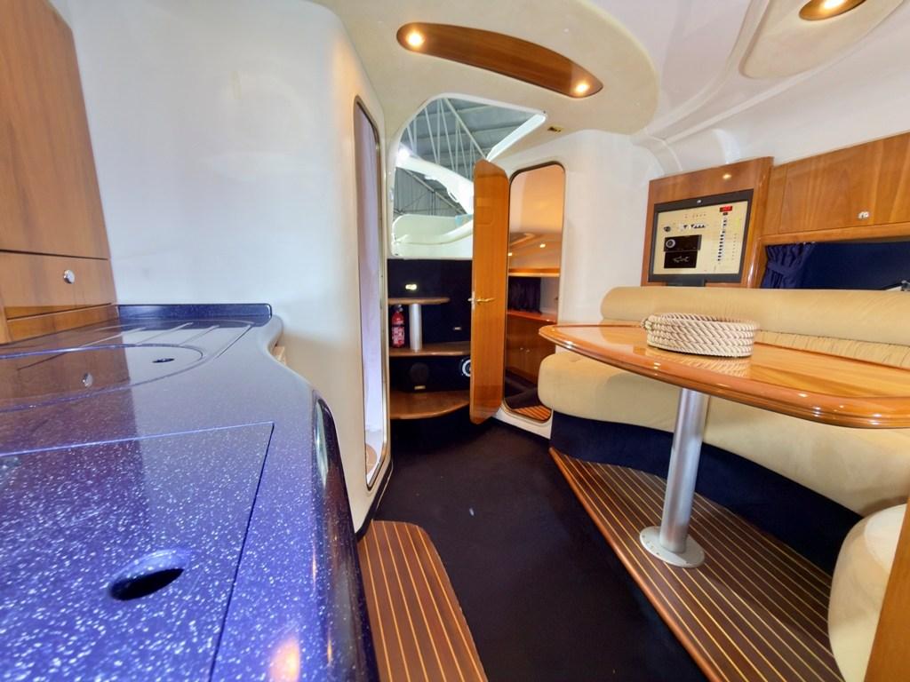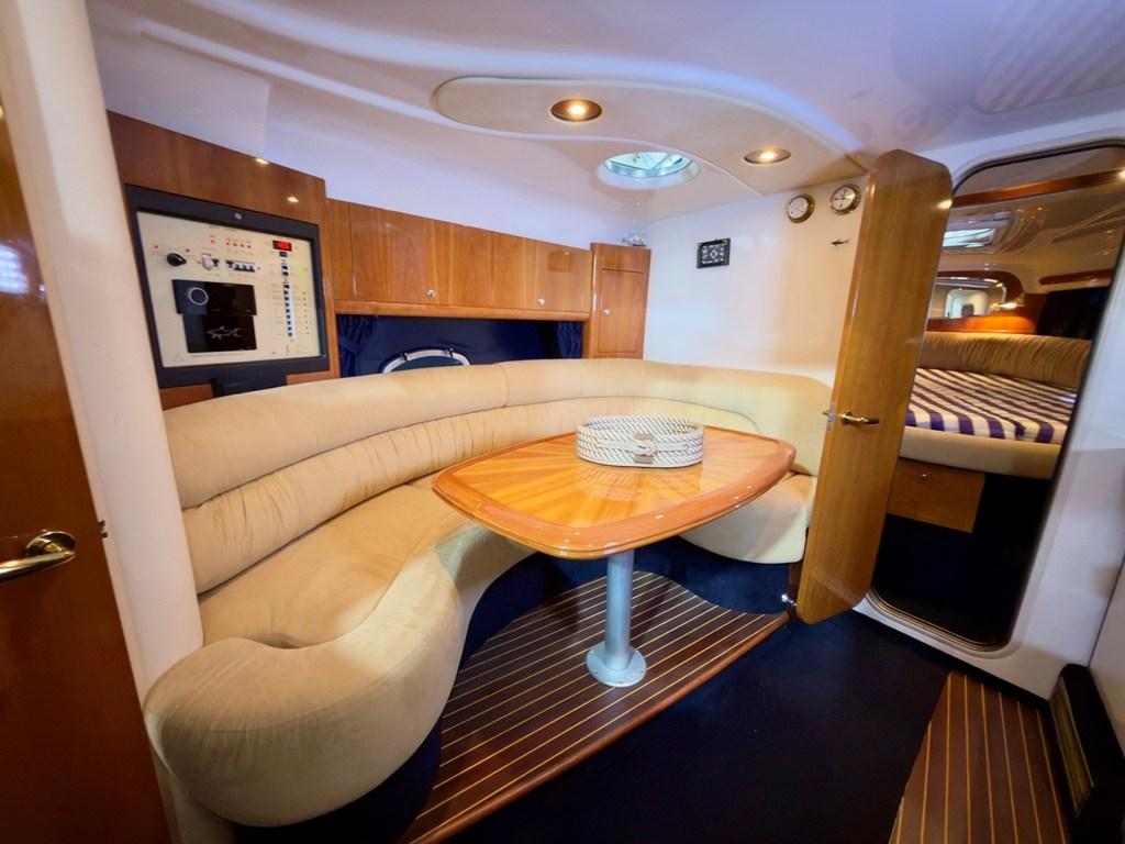 Le parti interne: Sono sorprendentemente moderne ampie e ben distribuite per la sua categoria. Ben arieggiato e luminoso il salone, con locali separati; per maggior privacy le cabine sono entrambe chiuse con propria porta di accesso.