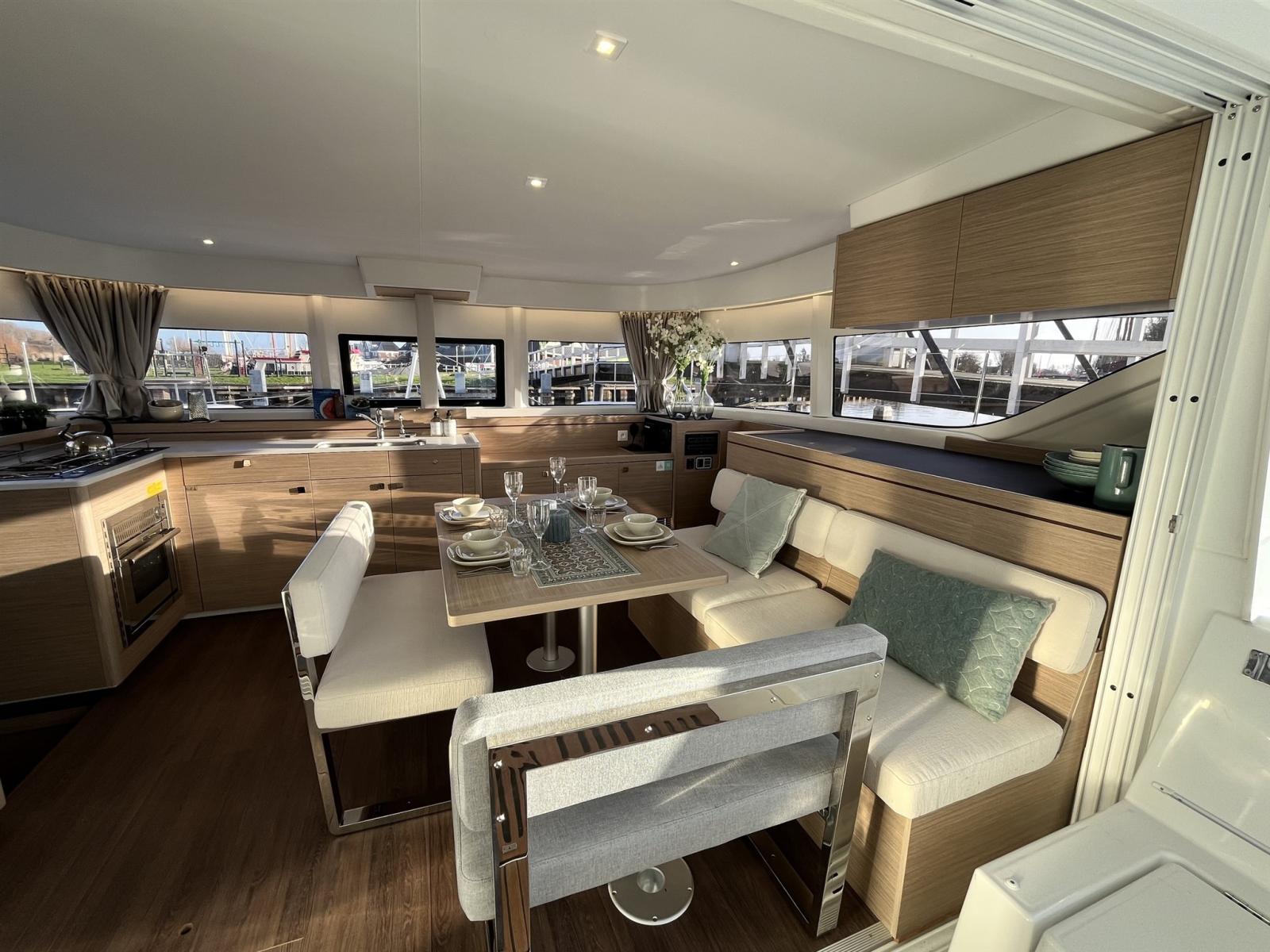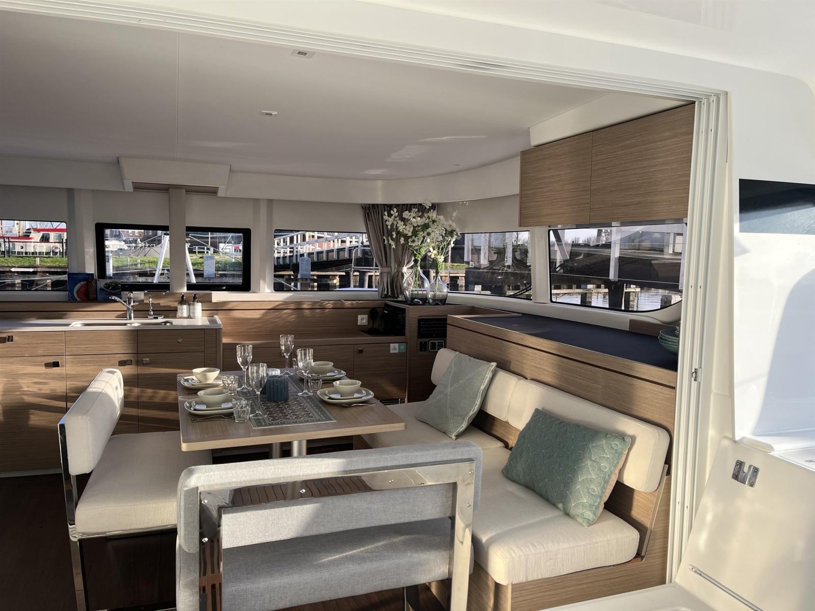 Il Lagoon 43 Owners Version è un catamarano spazioso ed elegante, dotato di un ampio salone con vista panoramica e di una cucina moderna, ideale per i pasti a bordo. Le tre generose cabine sono tutte dotate di bagno privato, per garantire privacy e comfort ottimali. Grazie all'ampio spazio di stivaggio e allo spazioso prendisole, questo catamarano è perfetto per lunghe navigazioni o per una vacanza indimenticabile con la famiglia e gli amici.