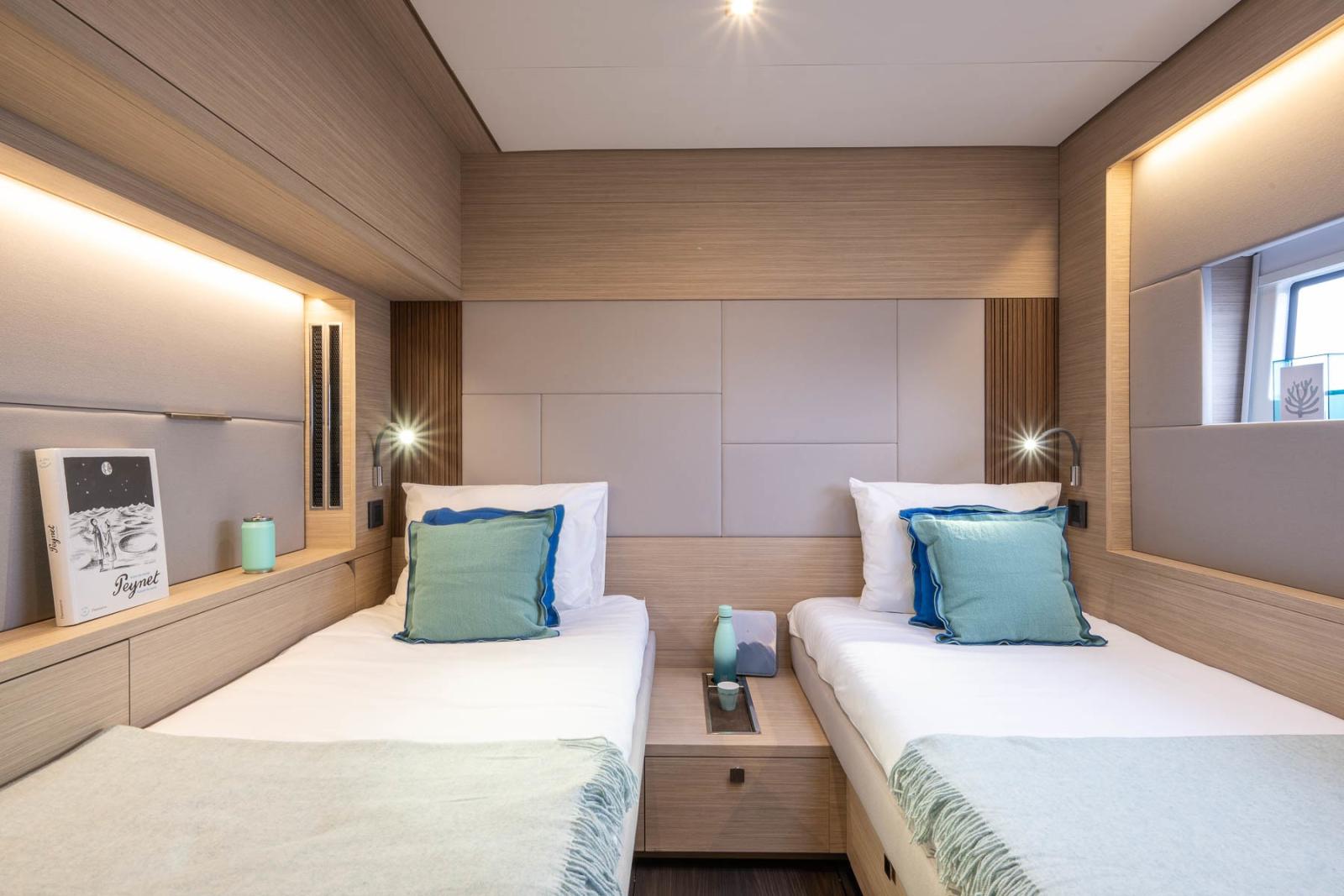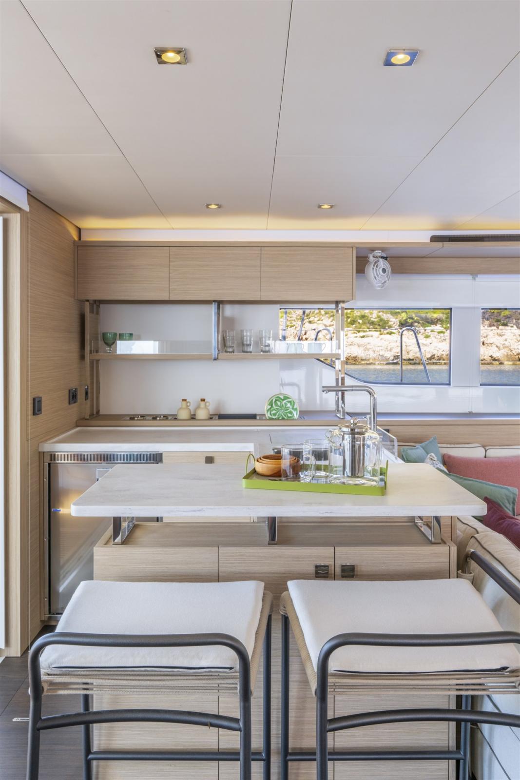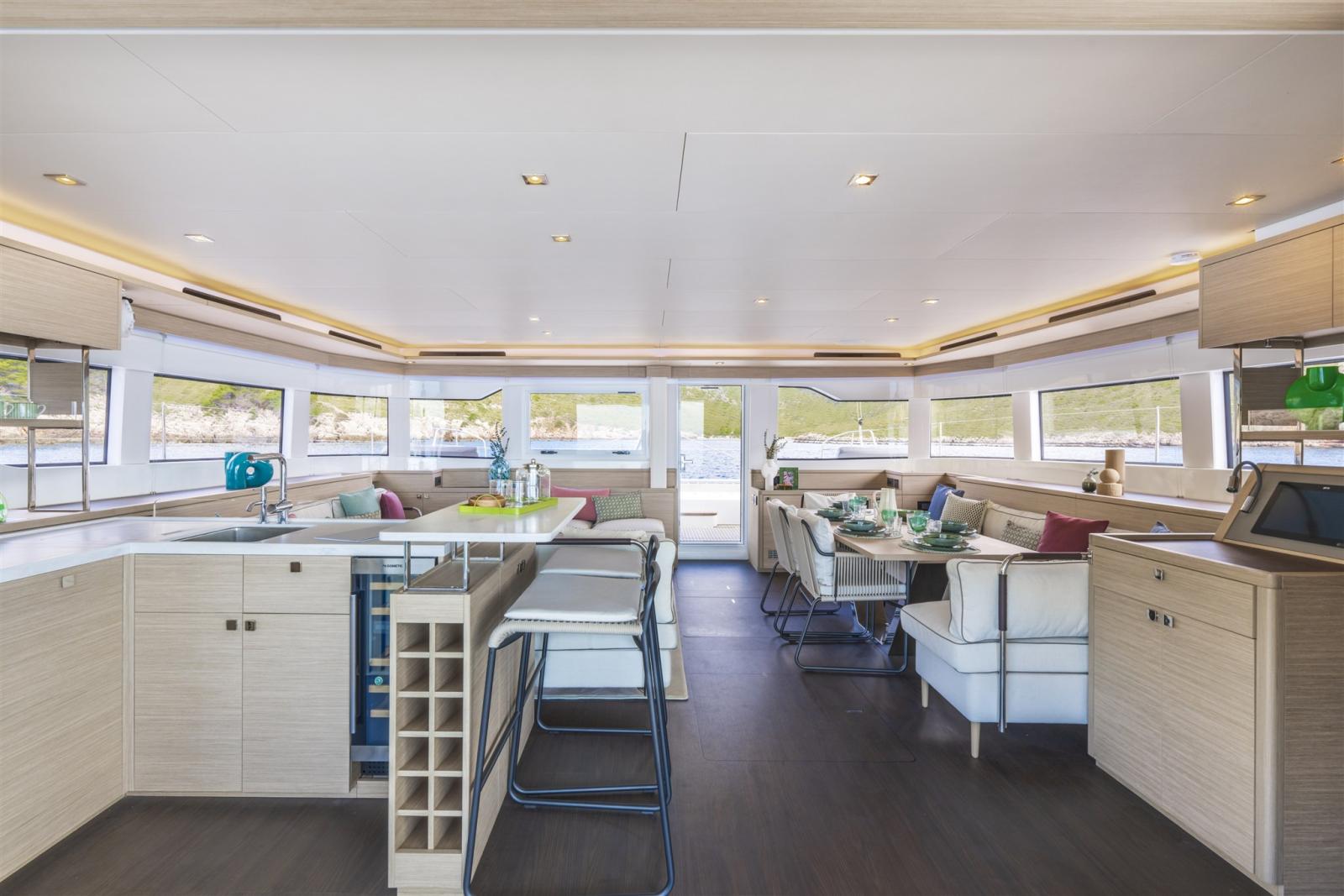 Il pozzetto di poppa del Lagoon 60 è completamente aperto sul mare e offre un'eccezionale libertà di movimento. Le terrazze aperte offrono un accesso diretto per nuotare. Progettato per diventare il vostro spazio di vita preferito, il pozzetto di poppa beneficia della sicurezza e della facilità di accesso attraverso gradini leggermente angolati.