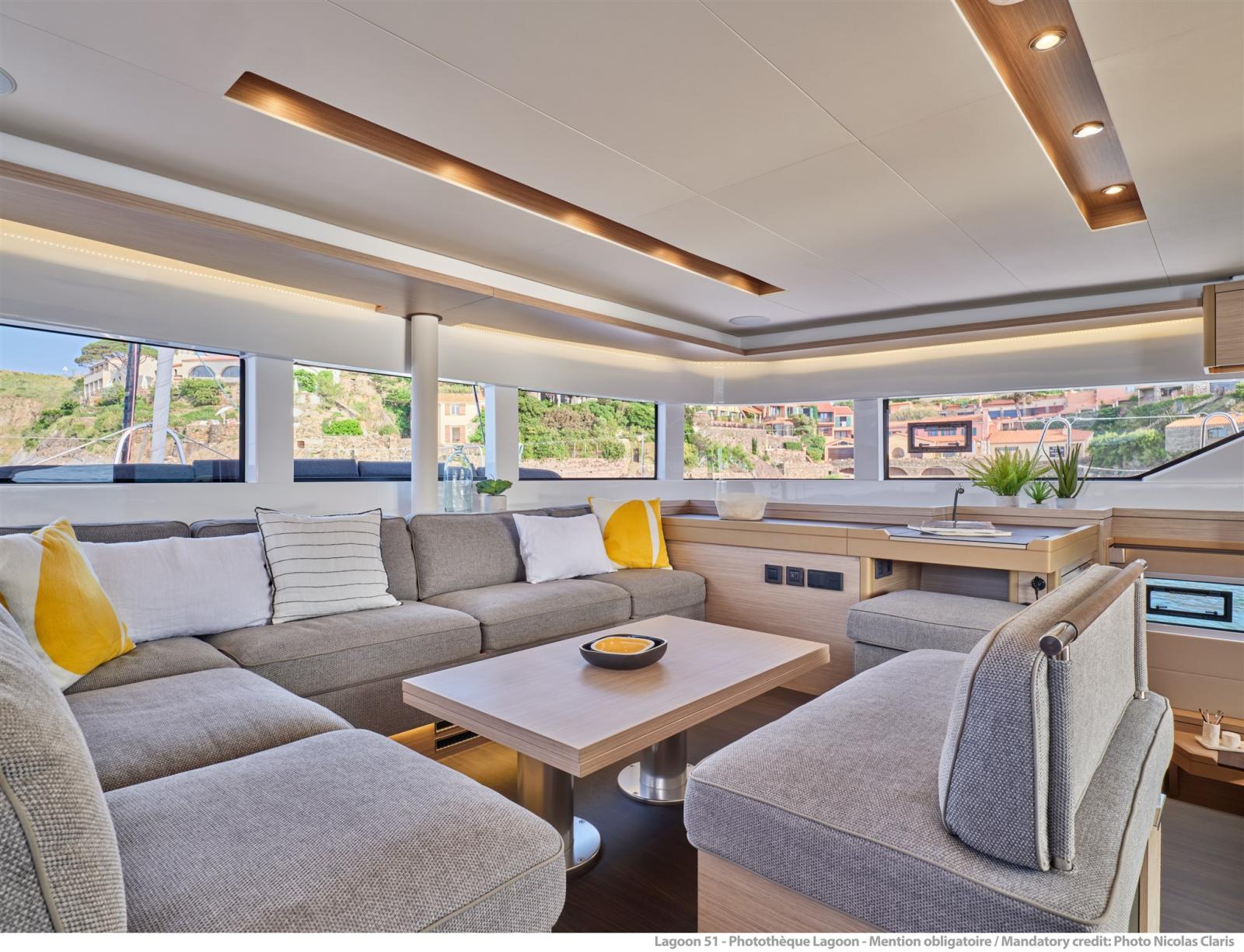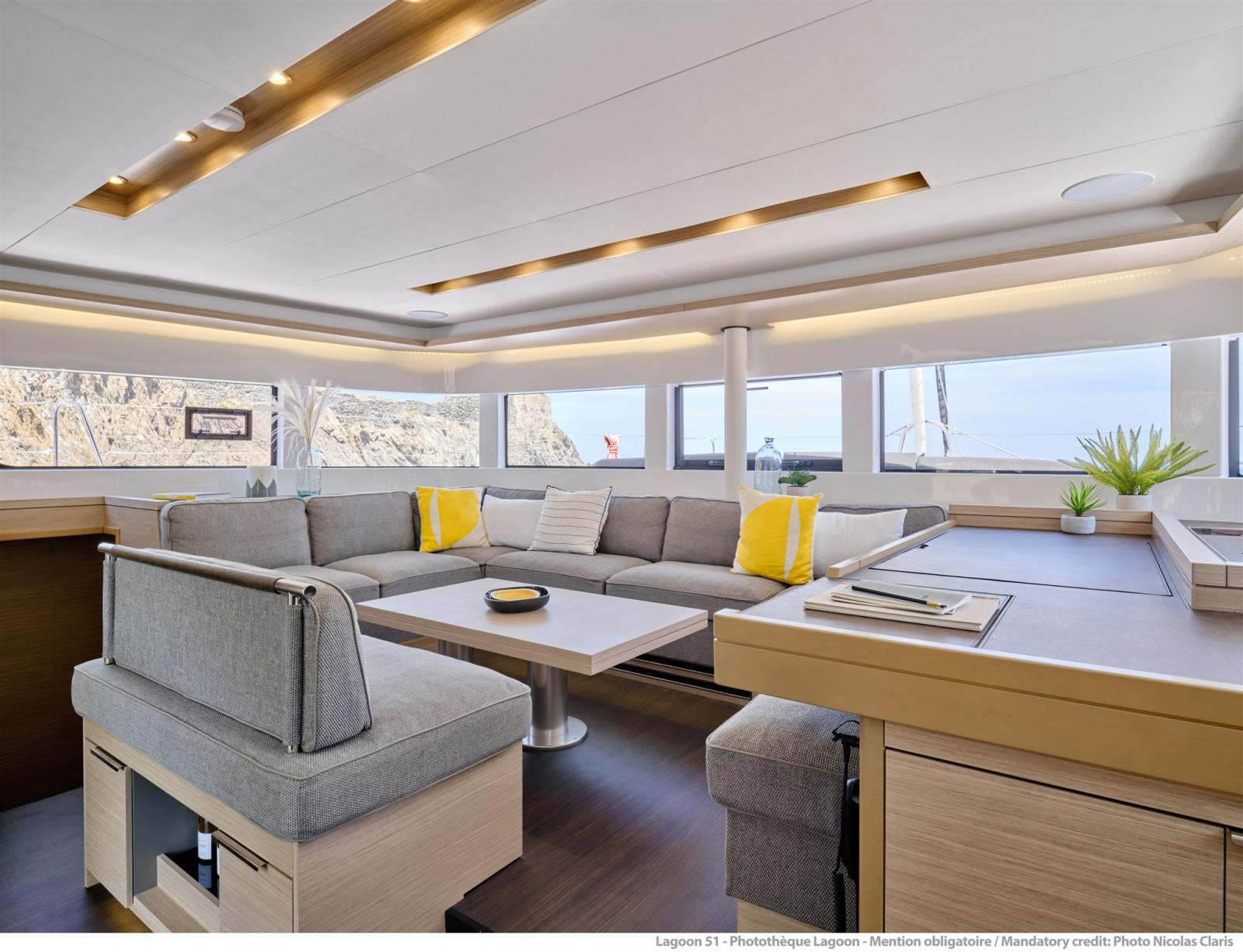 I team Lagoon si sono reinventati per soddisfare le richieste della nuova generazione di proprietari. Lagoon 51 offre opzioni di pannelli solari XXL sul tetto. Questa tecnologia fornisce oltre 3.400 watt di potenza per far funzionare il servizio di bordo. La barca è quindi completamente autonoma (tranne l'aria condizionata). I pannelli solari si adattano perfettamente alle linee del catamarano e non interferiscono con la vita a bordo. Il flybridge e le tende da sole sul tetto sono ancora accessibili e utilizzabili anche con i pannelli in posizione.
