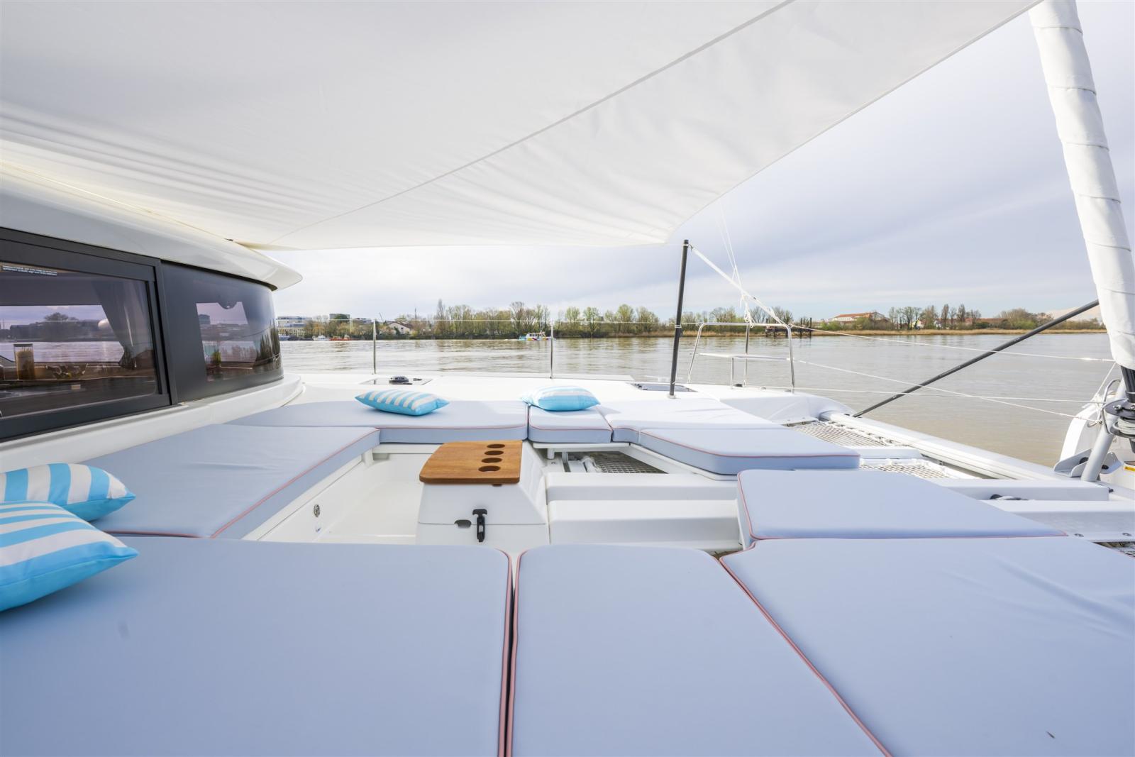 Gli scafi più leggeri e il migliore posizionamento dell'albero garantiscono prestazioni di navigazione ottimali di questo nuovo catamarano da crociera. Un pozzetto al pianterreno e un salone forniscono un collegamento tra l'interno e l'esterno e offrono comfort quando si è a bordo. Questo è il catamarano ideale per i velisti che cercano più spazio e comfort insieme agli amici o alla famiglia. La stazione dei caschi sul flybridge offre una panoramica perfetta in ogni circostanza, ma anche una bella vista sui dintorni.
