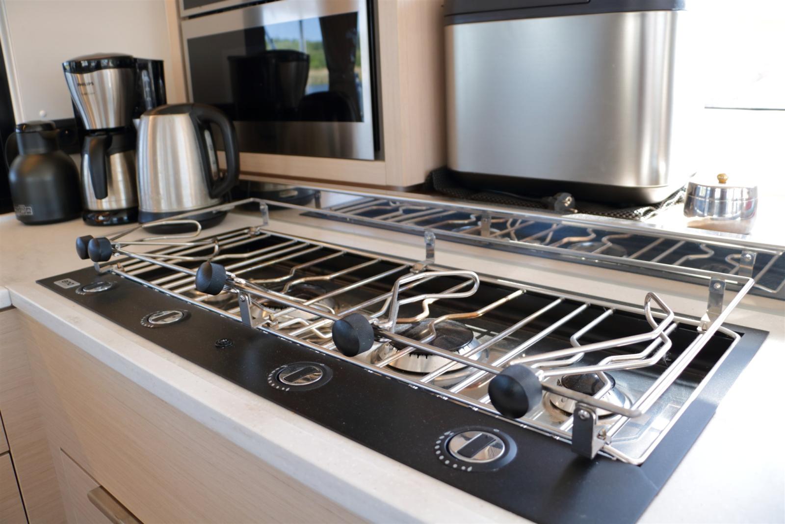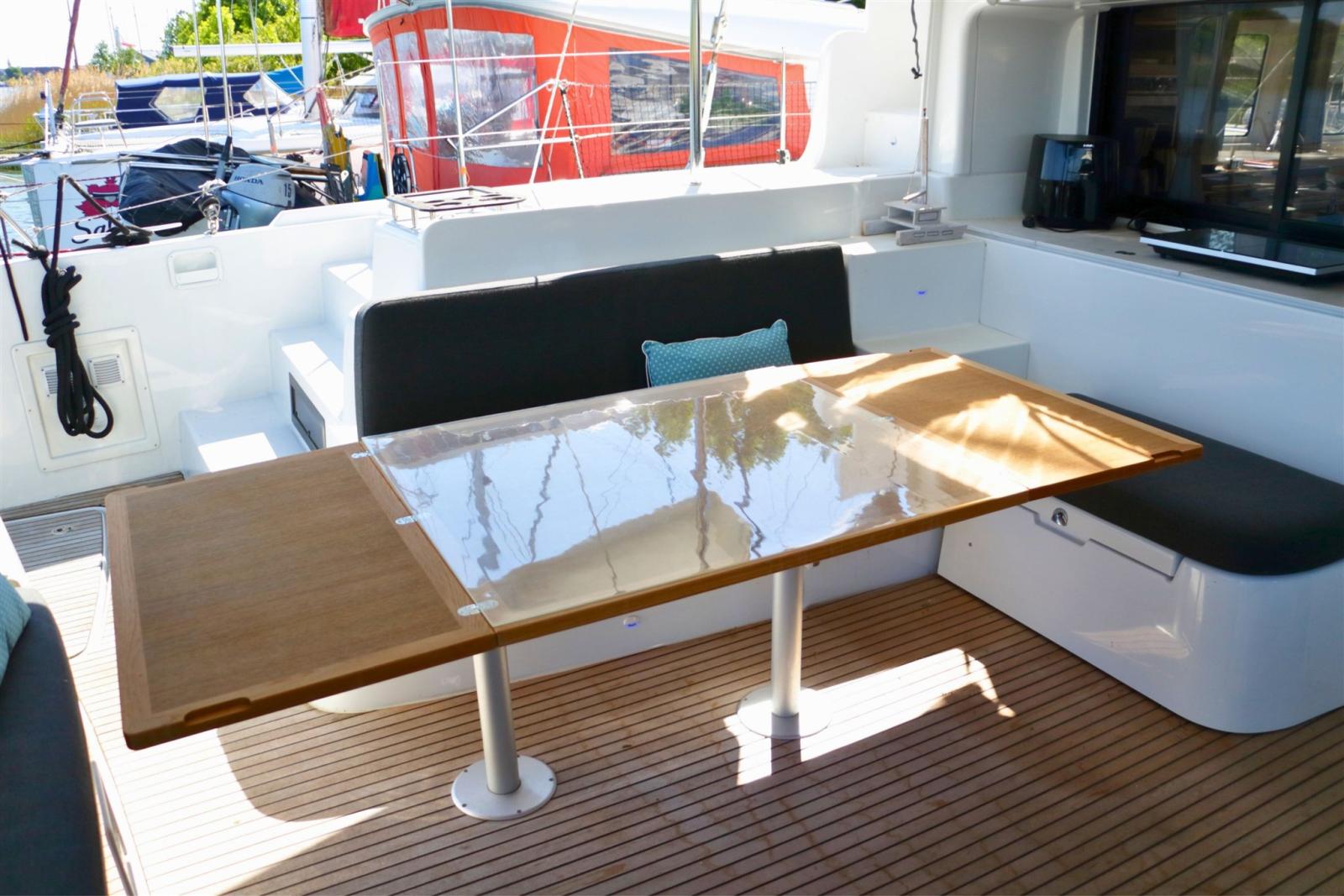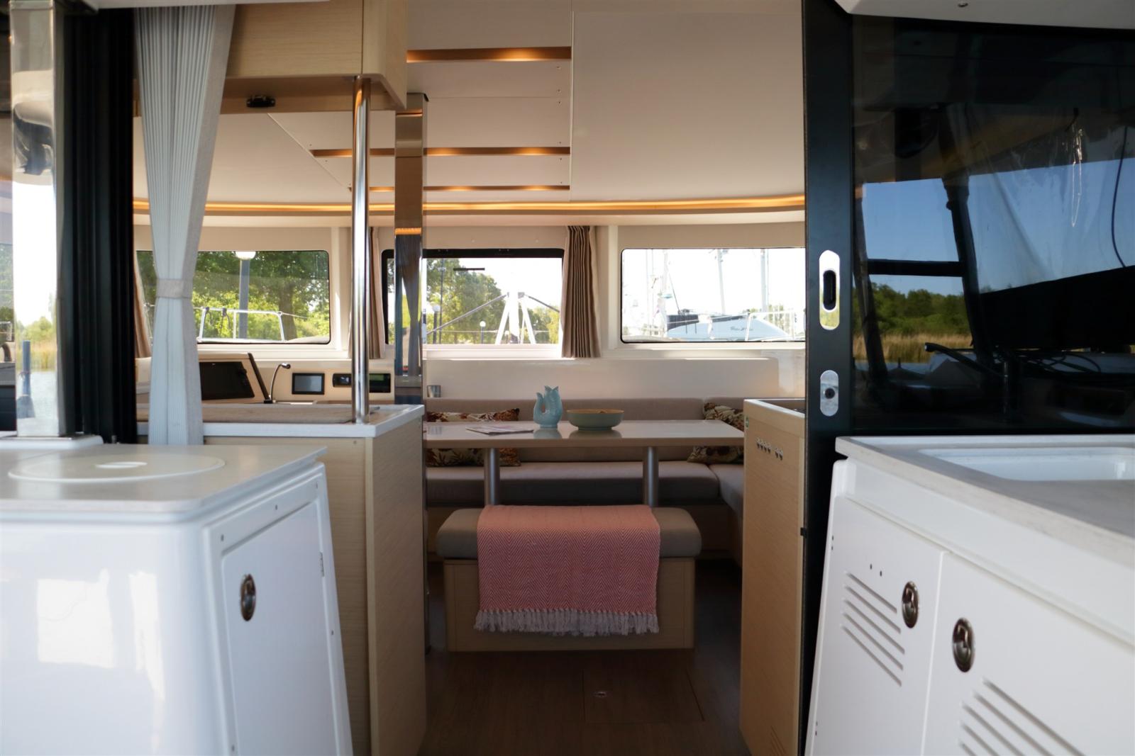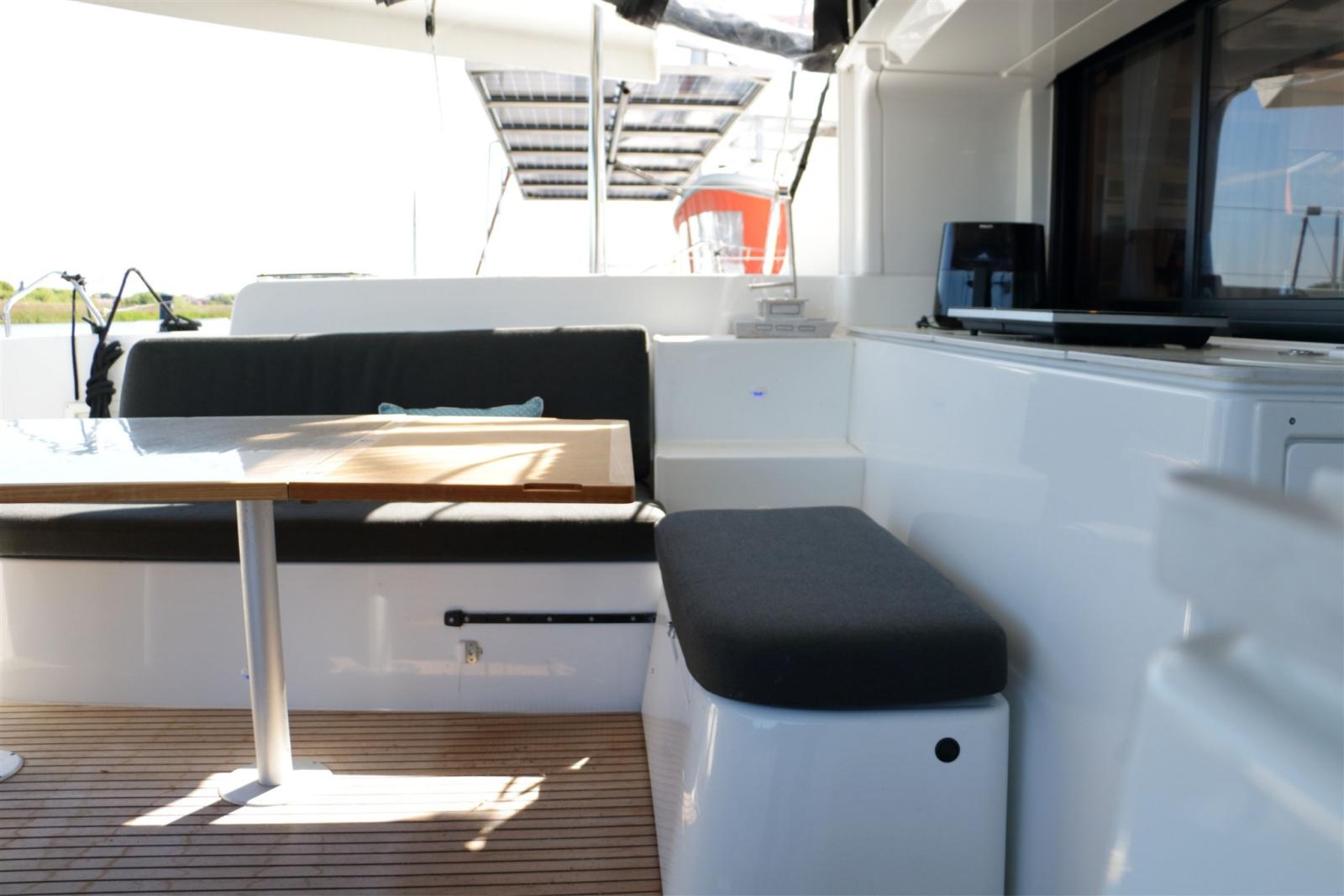 Equipaggiato con potenziamenti preziosi. Questo catamarano è completamente autosufficiente e attrezzato per vivere e navigare comodamente. La configurazione dell'alimentazione energetica a bordo è unica e offre lo stesso comfort di casa con batterie al litio da 22 kWh e 8 pannelli solari. Tutte le attrezzature, compresi il condizionatore, la macchina dell'acqua e la lavatrice/asciugatrice, lavorano sulle batterie invece che sul generatore. In questo modo, non avrai alcun disturbo dal generatore.
