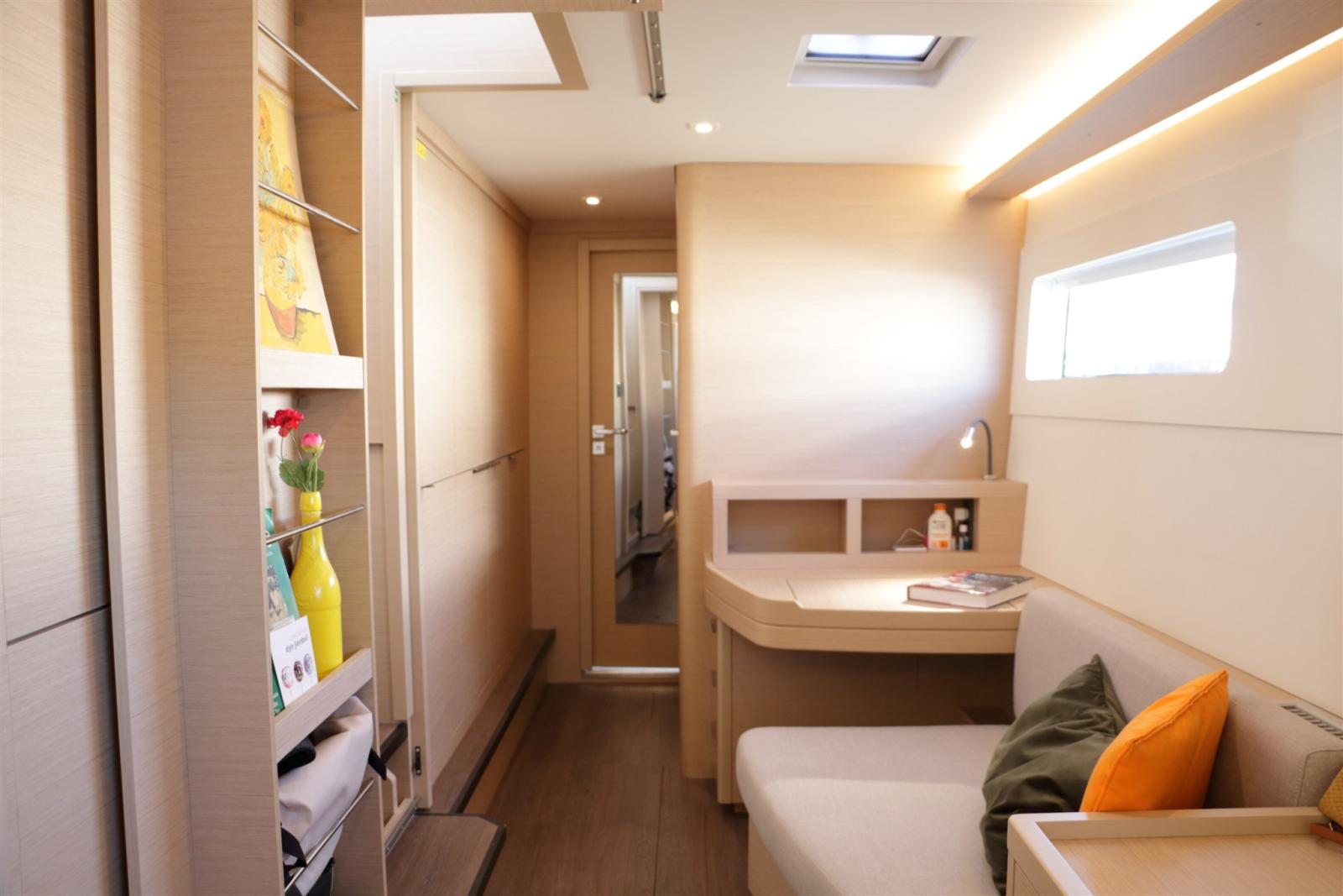 La spaziosa cabina del proprietario copre un intero scafo. Spazio, lusso e comfort.