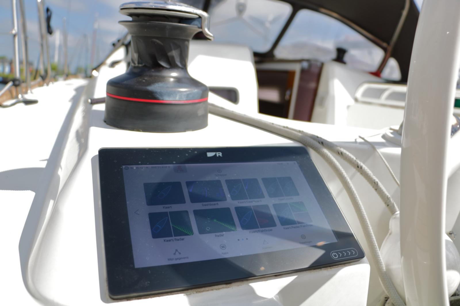 Log (Raymarine), Pilota automatico (Raymarine p70s), Plotter (Raymarine Axiom), Radio VHF (Raymarine Ray50 VHF).
