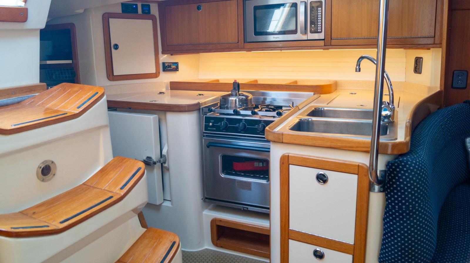La navigazione elettronica è di alto livello con strumenti Raymarine I70, plotter Axiom 12 PRO (2021), radar Quantum Doppler (2019), AIS-700 (2023), VHF Ray 63 con cornetta wireless (2022) e un potente pilota automatico. Grazie all'elica di prua Vetus (95 KgF), le manovre sono facili. All'ancora sei affidabile con il Rocna Vulcan (2023).
