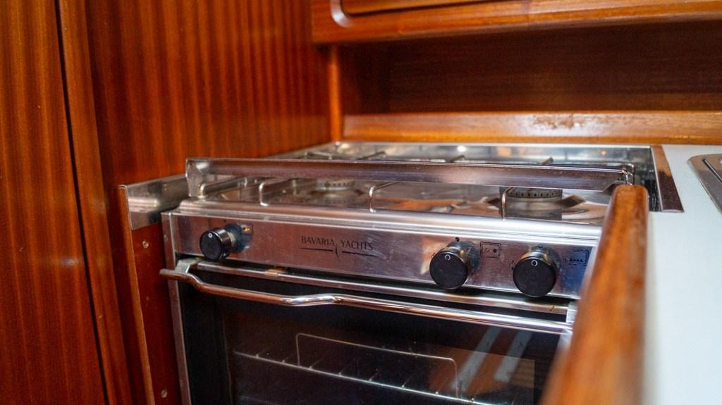 L'interno è luminoso e suggestivo, con toni caldi del legno e un layout ponderato che sfrutta al meglio lo spazio. Il salone offre un'accogliente area salotto e una cucina ordinata con fornelli, forno, frigorifero e molto spazio nell'armadio. Le tre cabine offrono comodi posti letto per tutta la famiglia o un gruppo di amici, e la stanza umida con doccia e servizi igienici completa il soggiorno a bordo.