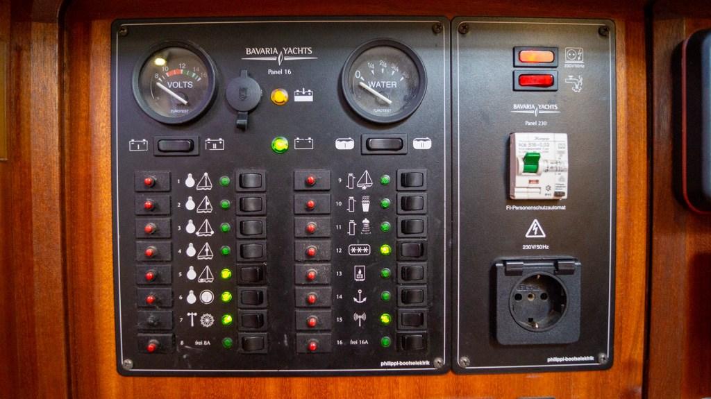 Boiler, Indicatore del Serbatoio dell’Acqua, Indicatore della temperatura del motore, Prese interne 12v, Prese interne 220v, WC marino manuale.
