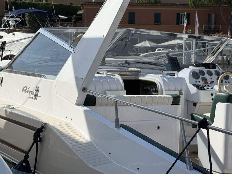 Strumenti originali VDO per Riva (avviamento e stop motori, contagiri, manometri pressione olio motori, manometri pressione olio invertitori, temperatura acqua, amperometri, contaore, contamiglia); GPS; Leve motori; Bussola; VHF; Ecoscandaglio; Radio/Stereo