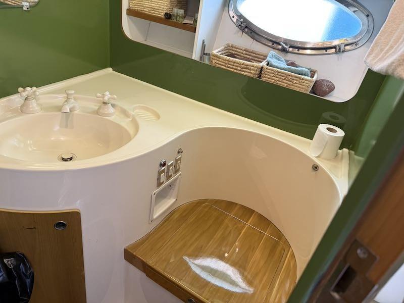 Sottocoperta: cucina attrezzata, bagno privato con doccia e wc elettrico. Cabina open space con 4 posti letto.