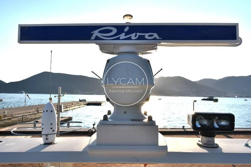 Coperta: prendisole di prua, spazioso pozzetto in teak con tavolo pranzo e sedie Riva pieghevoli, all'interno dinette con tavolo pranzo, divani e postazione di comando.