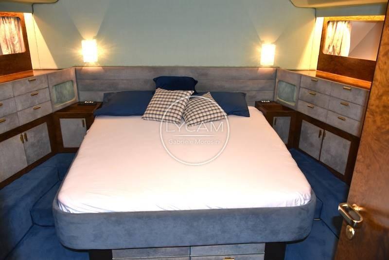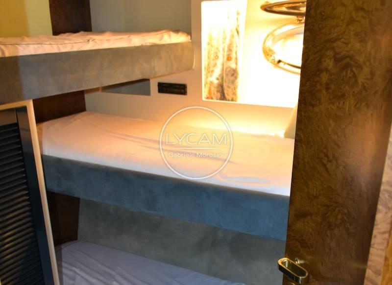 Sottocoperta: 1 cabina armatore matrimoniale di poppa con bagno separato, 1 cabina ospiti matrimoniale a prua con bagno separato, 1 cabina ospiti con 2 letti singoli e bagno, cabina per 2 equipaggio;