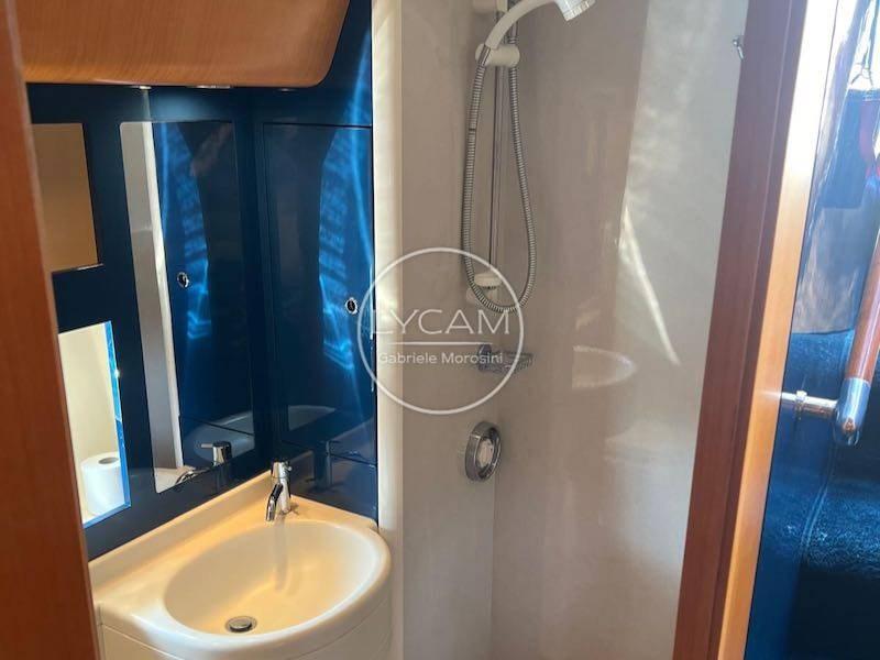Sottocoperta - 1 cabina matrimoniale con doppio armadio, bagno e box doccia separato; 1 ampia cabina ospiti con 2 letti, bagno e box doccia; dinette con divano in pelle e TV; 1 ampia cabina equipaggio o singola con relativo bagno con doccia; angolo cottura con lavello, completo di piano cottura a induzione, forno e doppio frigo.