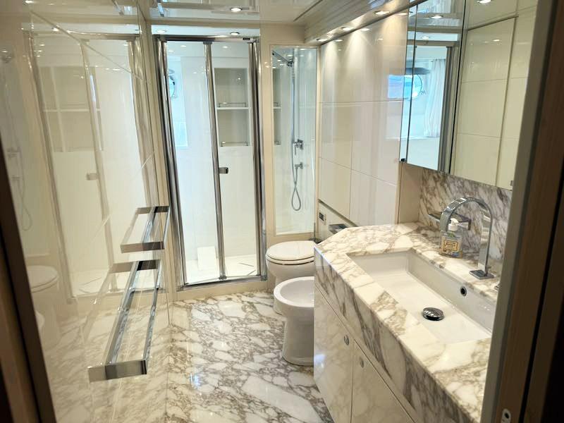 Il ponte inferiore è dedicato alla zona notte così composta: cabina armatoriale a tutto baglio a centro scafo con angolo relax, zona ufficio, dressing room e locale bagno riservato; 2 cabine ospiti speculari con letti in piano e letti a pullman a scomparsa mentre a prua la cabina VIP. Tutte sono dotate di bagno en-suite. A prora estrema, attraverso un passo d’uomo dal ponte di coperta, si accede invece al locale equipaggio composto da cabina con 2 cuccette e una toilette.