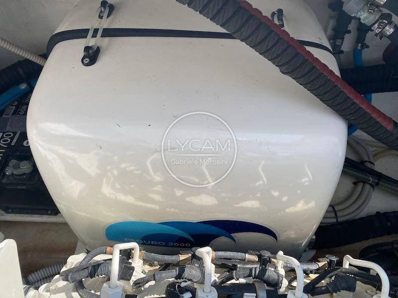 Strumentazione motori, manette elettroniche ZF, GPS-Plotter-Ecoscandaglio Raymarine touchscreen, VHF Raymarine, pilota automatico, bussola, stereo Fusion 4 altoparlanti con fader, TV.
