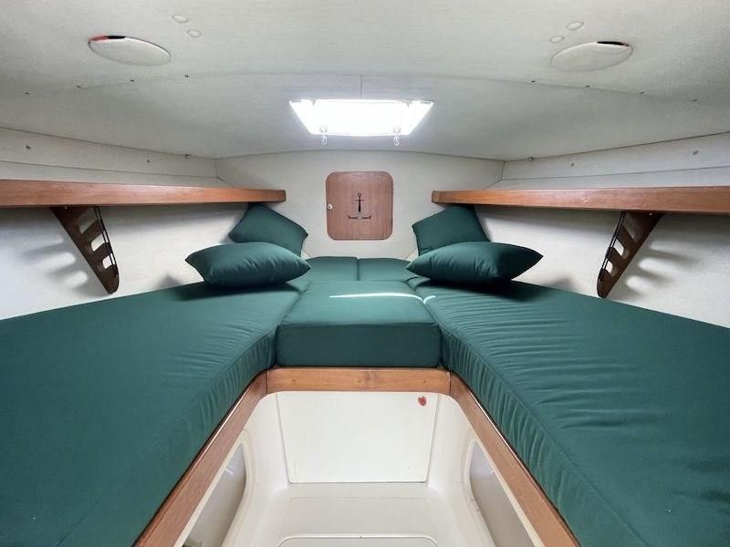 IMPIANTO ELETTRICO/ELETTRONICA: revisione completa impianto e quadro elettrico 12V - 2021, nuova linea 220V con caricabatterie - 2021, nuovo impianto alimentazione linea strumenti - 2021, linea strumenti NEMEA 2000 - 2021, PLOTTER RAYMARINE AXIOM – 2021, Cartografia MEDITERRANEAN & BLACK SEA MSD NAV+, ECO RAYMARINE - 2021, VHF RAYMARINE – 2021, Antenna BANTEN 1,5m - 2021, AUTOPILOT RAYMARINE - 2022, RADIO FUSION - 2021, ALTOPARLANTI HI-FI FUSION - 2021 (6 dinette/cuccetta/fly), separazione linee batterie motore/servizi - 2022, batteria Servizi "Deep CYCLE 160Ah - 2022, batteria Motore 120Ah - 2021, nuovo parallelo batterie manuale (emergenza) - 2021, nuovo impianto cicalini emergenza pressione olio temperatura ad invertitori inseriti - 2023, prese, accendisigari ed USB pozzetto e FLY - 2023, relamping led - 2023