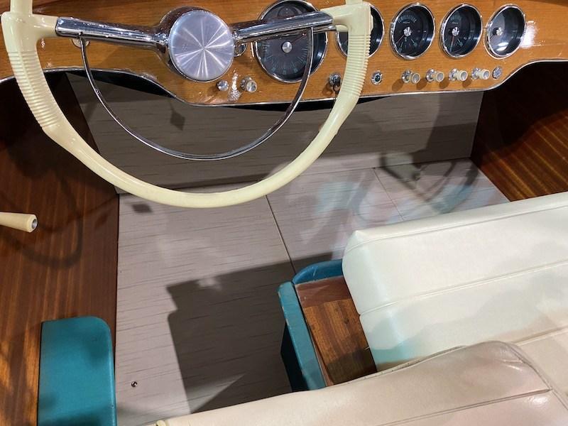 Il Riva Olympic è il successore del Super Florida, fu progettato nel 1968, anno delle olimpiadi di Città del Messico, da cui ne prende il nome. Ideale per uscite giornaliere e per lo sci nautico, può portare no a 6 persone con un’autonomia di navigazione di 5 ore. Prodotto in 274 unità no al 1983. Questo motoscafo è in eccellente stato e pronto a navigare, completamente originale, restaurato nel 2012 e mai utilizzato; motore matching number revisione 0 ore del 2023 . Lavori eseguiti nel 2012: sostituzione fondo, carteggiatura e verniciatura di tutte le parti in legno (ciclo Riva 22 mani), cromature, strumentazione, revisione motore e impianti 2023. Prendisole originale disegnato all’epoca dall’artista Dady. Un Riva per puristi del marchio. Ulteriori informazioni su richiesta.