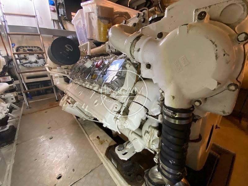 Sottocoperta: dinette con cucina attrezzata con frigorifero, freezer, lavastoviglie, zona pranzo, a mezzanave cabina armatoriale con bagno en suite; a prua cabina VIP con bagno en suite; cabina ospiti 2 letti singoli con bagno notte/giorno; cabina marinaio con bagno.