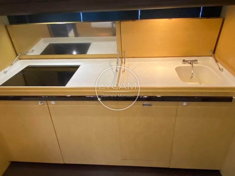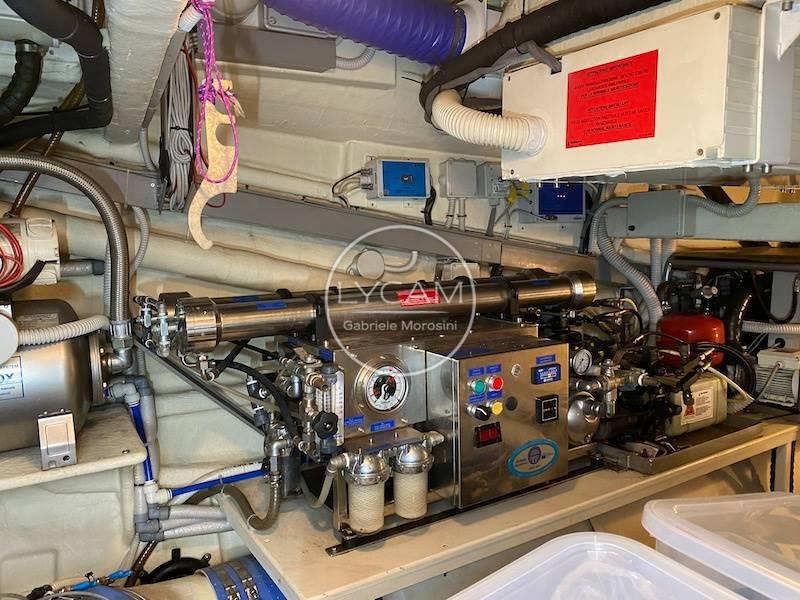 Colore scafo Shiny Silver; Aria condizionata caldo/freddo; Elica di prua; Dissalatore; Autoclave; Boiler; Caricabatterie; Generatore; Coperta e plancetta teak; Doccetta pozzetto; Scaletta bagno; Passerella idraulica; Racor; Tavolo pozzetto; Winch tonneggio; Salpa ancora elettrico; Luci di via; Luce fonda; Luci subacquee; Faro orientabile; Luci led pozzetto; Garage apertura elettroidraulica; 2 Frigoriferi; 1 Freezer, 1 Cantinetta vini; 4 fuochi vetroceramica; Microonde; Lavastoviglie ; Stereo Hi-FI-CD-iPod, TV; Tender motore FB Honda 9,9 hp.