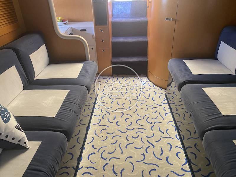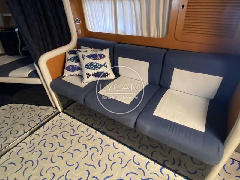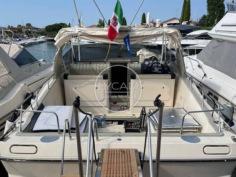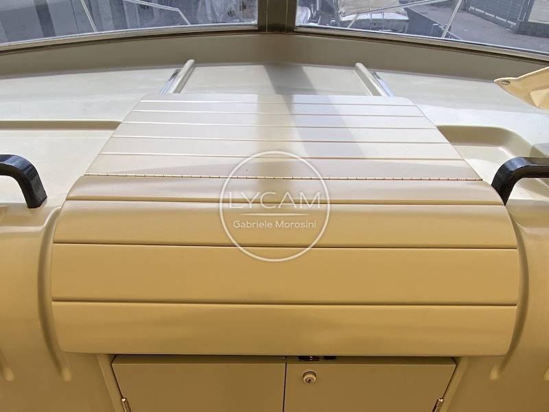 Coperta: ampio pozzetto prendisole di poppa convertibile in dinette e prendisole; Postazione di pilotaggio a dritta e sedile co-pilota a sinistra; Prendisole di prua.