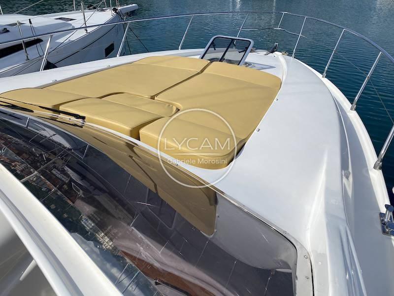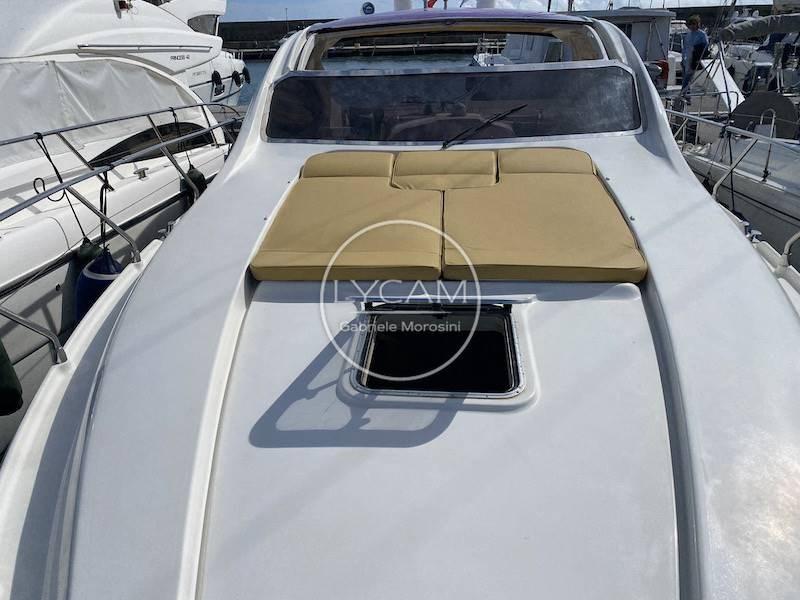 Bitte di ormeggio; Luci di navigazione; Luce di fonda; Faro orientabile; Salpa ancore elettrico; Ancora; Sirena; Passerella idraulica; Cuscinerie pozzetto; Cuscinerie prendisole prodiero; Plancetta in teak; Scaletta bagno; Frigorifero; Fornello a gas; Pavimento in teak; Pozzetto in teak; Doccia esterna; WC marino; Presa 220V; Caricabatterie; Batterie; Telo copertura pozzetto; Flaps