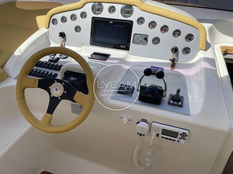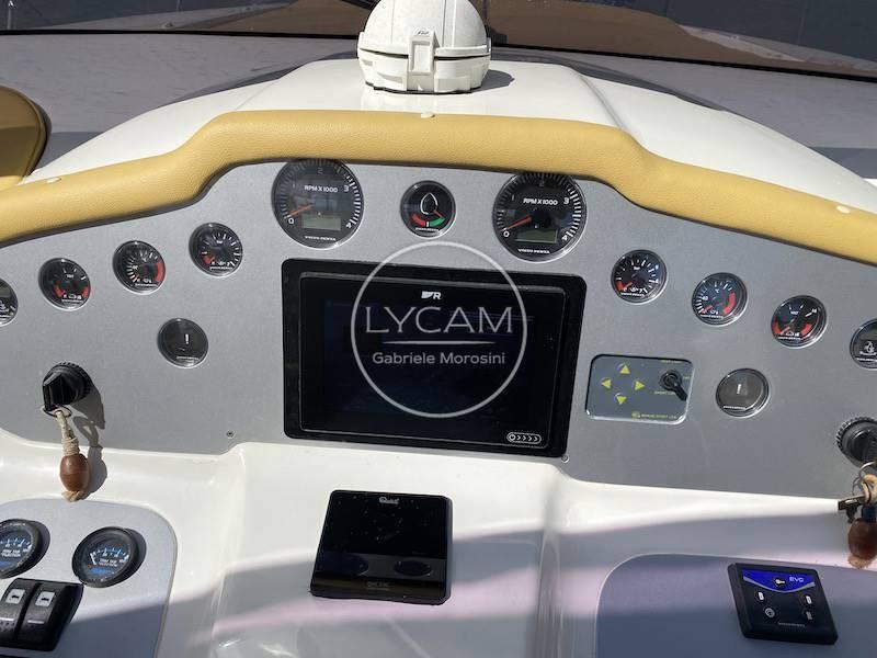 Strumentazione controllo motori; Bussola; Contamiglia; Indicatore angolo di barra; GPS; Ecoscandaglio; VHF; Radio/Stereo; Elica di prua; Leve gas motori